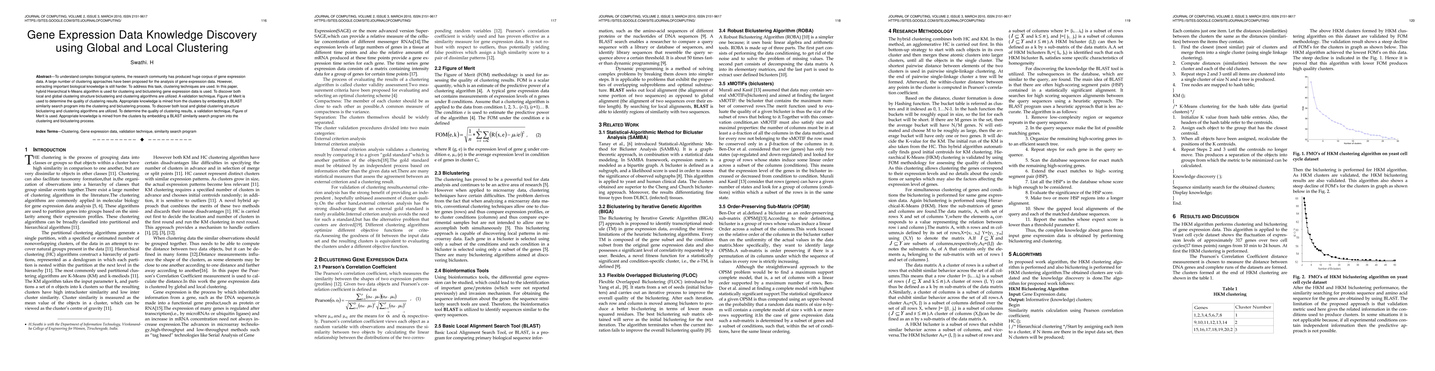 This paper proposes a hybrid Hierarchical k-Means algorithm for clustering and biclustering gene expression data to uncover both local and global structures. It validates the results using a Figure of Merit and integrates a BLAST similarity search to extract relevant biological knowledge from the clusters.