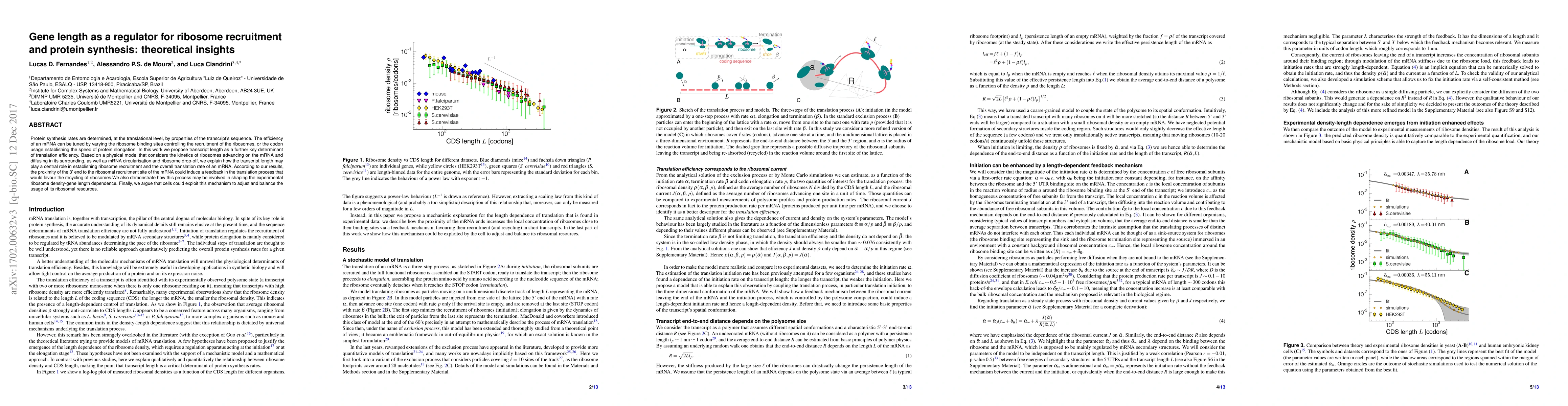 This paper proposes that gene length significantly influences ribosome recruitment and protein synthesis efficiency through a physical model. The study suggests that transcript length can regulate translation rates by affecting ribosome recycling and the spatial proximity of the 3' end to the ribosomal recruitment site, thereby optimizing ribosomal resource usage.