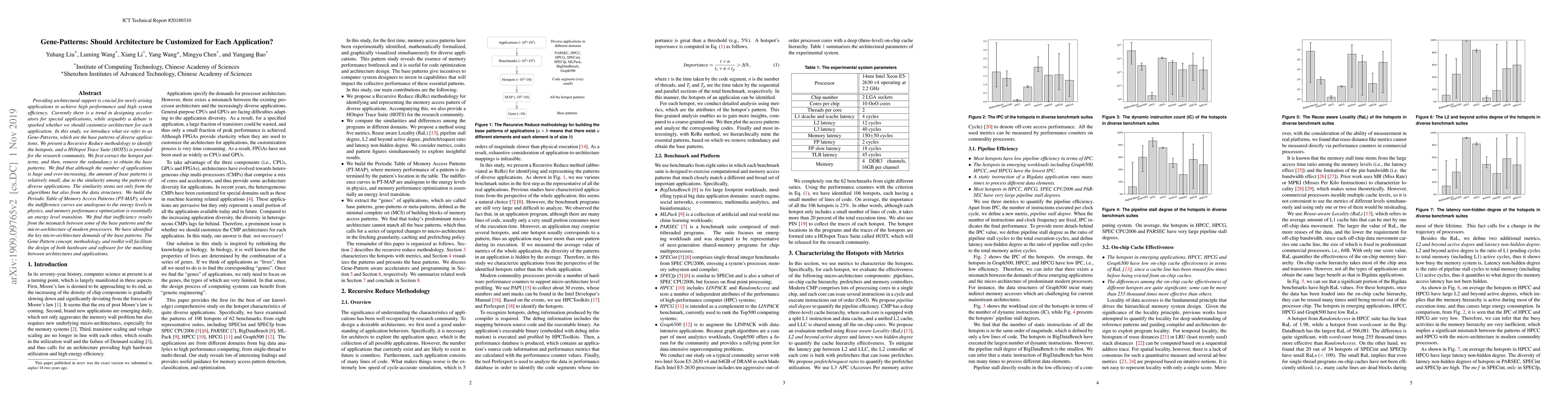 Providing architectural support is crucial for newly arising applications to achieve high performance and high system efficiency. Currently there is a trend in designing accelerators for special applications, while arguably a debate is sparked whether we should customize architecture for each application. In this study, we introduce what we refer to as Gene-Patterns, which are the base patterns of diverse applications. We present a Recursive Reduce methodology to identify the hotspots, and a HOtspot Trace Suite (HOTS) is provided for the research community. We first extract the hotspot patterns, and then, remove the redundancy to obtain the base patterns. We find that although the number of applications is huge and ever-increasing, the amount of base patterns is relatively small, due to the similarity among the patterns of diverse applications. The similarity stems not only from the algorithms but also from the data structures. We build the Periodic Table of Memory Access Patterns (PT-MAP), where the indifference curves are analogous to the energy levels in physics, and memory performance optimization is essentially an energy level transition. We find that inefficiency results from the mismatch between some of the base patterns and the micro-architecture of modern processors. We have identified the key micro-architecture demands of the base patterns. The Gene-Pattern concept, methodology, and toolkit will facilitate the design of both hardware and software for the matching between architectures and applications.