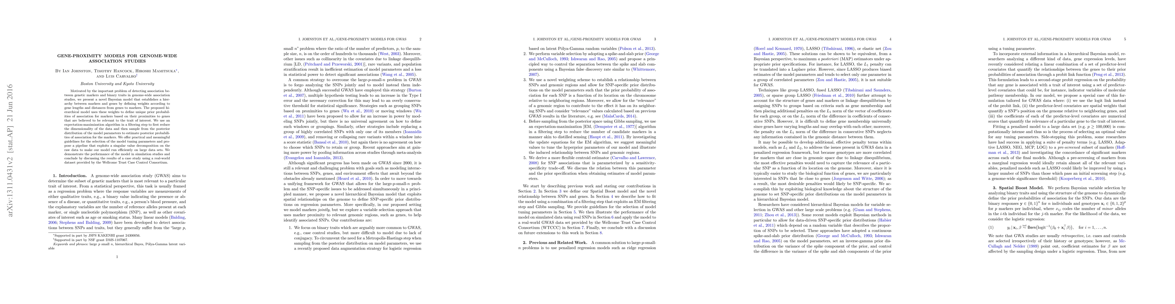 This paper introduces a novel Bayesian gene-proximity model for genome-wide association studies to detect associations between genetic markers and binary traits, leveraging gene lengths and distances to define marker-specific priors. The model is optimized for large datasets and demonstrated through simulations and a real-world case study.