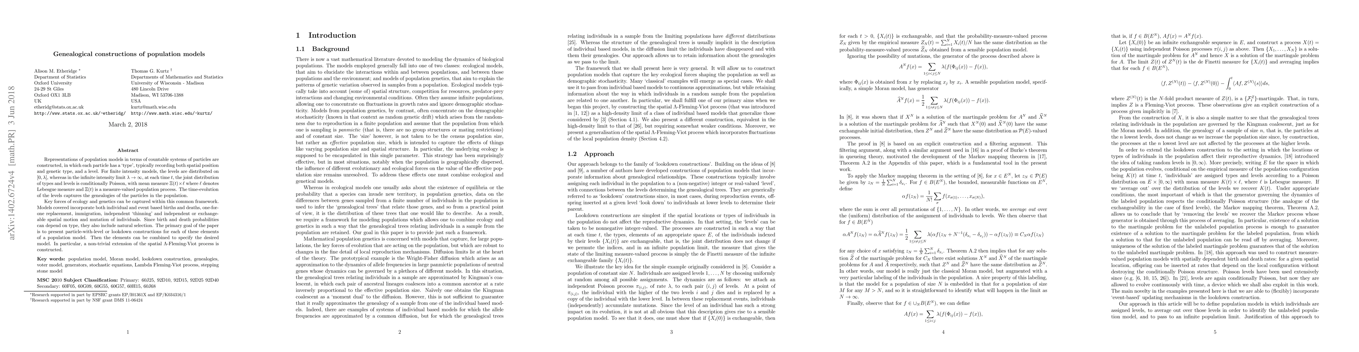Representations of population models in terms of countable systems of particles are constructed, in which each particle has a `type', typically recording both spatial position and genetic type, and a level. For finite intensity models, the levels are distributed on $[0,\lambda ]$, whereas in the infinite intensity limit $\lambda\rightarrow\infty$, at each time $t$, the joint distribution of types and levels is conditionally Poisson, with mean measure $\Xi (t)\times \ell$ where $\ell$ denotes Lebesgue measure and $\Xi (t)$ is a measure-valued population process. The time-evolution of the levels captures the genealogies of the particles in the population. Key forces of ecology and genetics can be captured within this common framework. Models covered incorporate both individual and event based births and deaths, one-for-one replacement, immigration, independent `thinning' and independent or exchangeable spatial motion and mutation of individuals. Since birth and death probabilities can depend on type, they also include natural selection. The primary goal of the paper is to present particle-with-level or lookdown constructions for each of these elements of a population model. Then the elements can be combined to specify the desired model. In particular, a non-trivial extension of the spatial $\Lambda$-Fleming-Viot process is constructed.