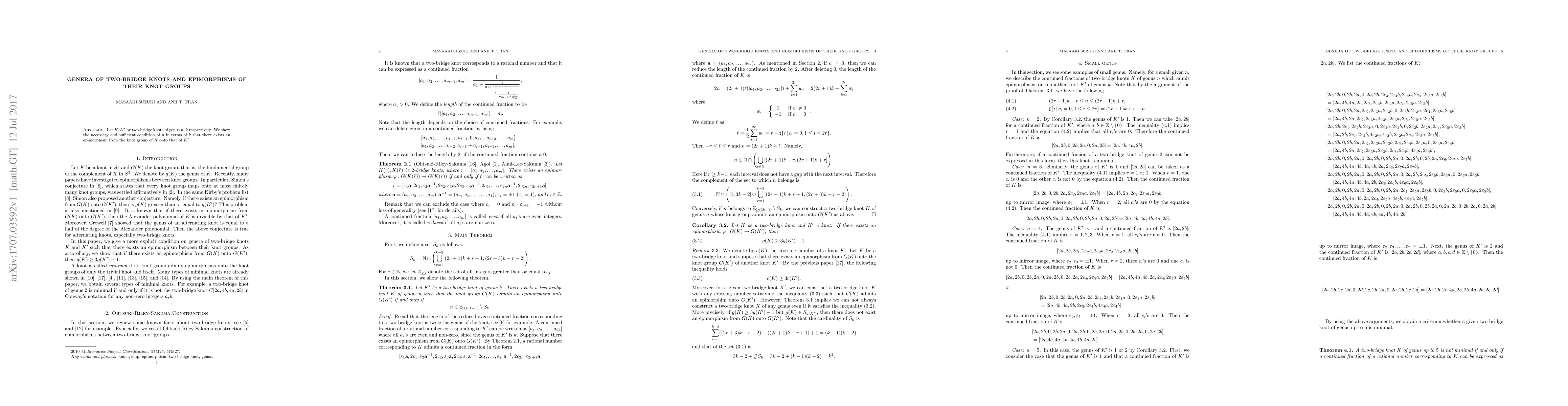Let $K,K'$ be two-bridge knots of genus $n,k$ respectively. We show the necessary and sufficient condition of $n$ in terms of $k$ that there exists an epimorphism from the knot group of $K$ onto that of $K'$.