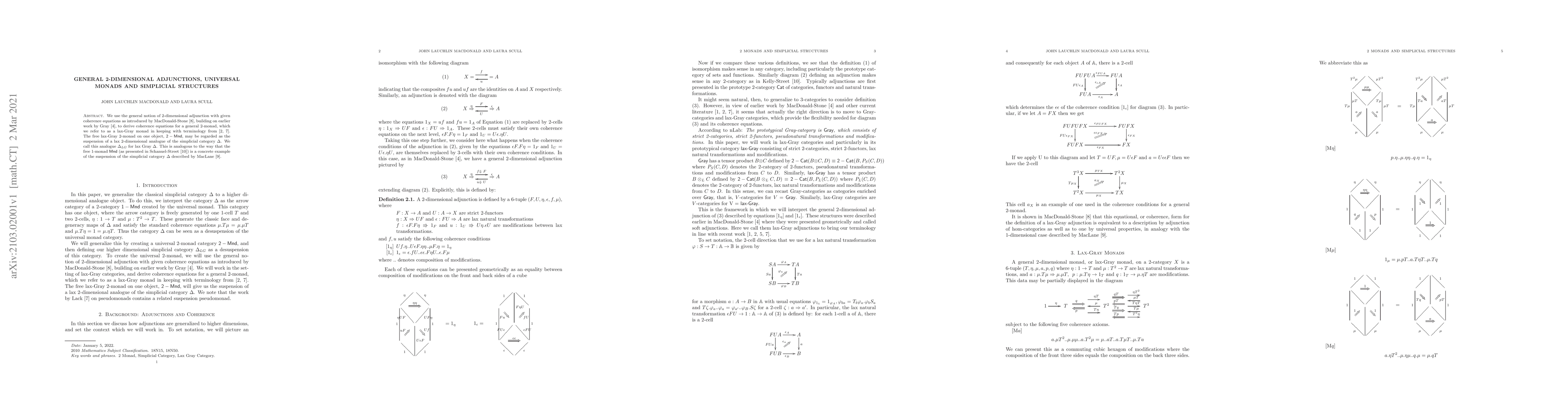 Researchers derived coherence equations for a general 2-monad called a lax-Gray monad, using 2-dimensional adjunction with coherence equations. This allows for the study of universal simplicial structures.