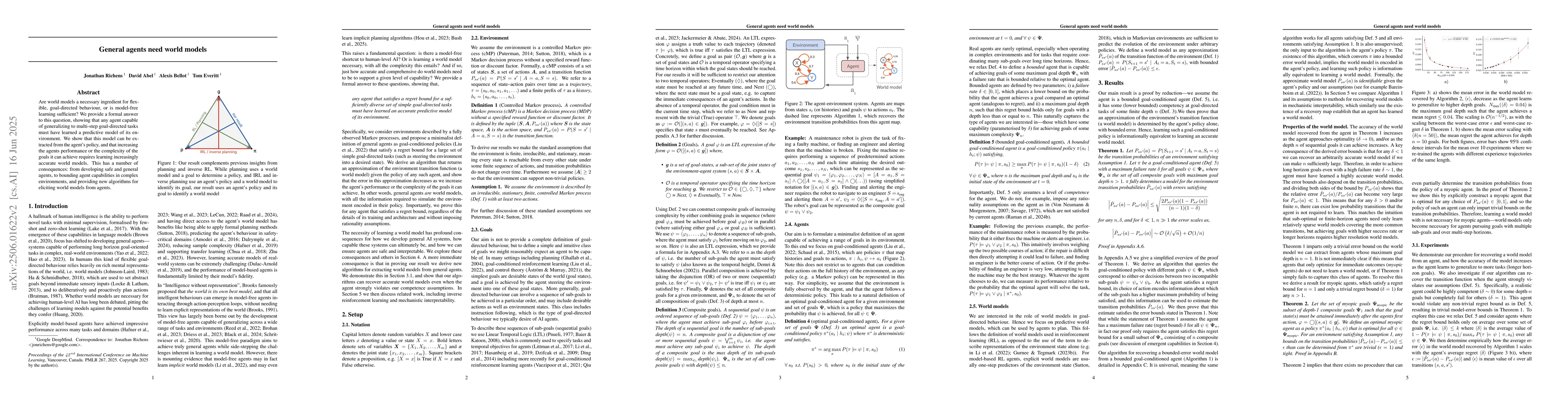 The paper presents a formal proof demonstrating the necessity of world models for general agents in multi-step, goal-directed tasks, along with methods to extract these models from learned policies.