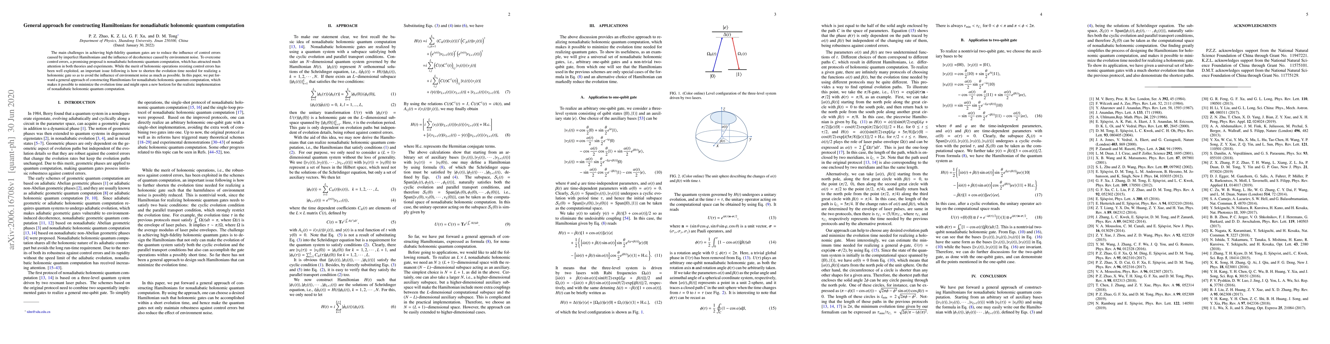This paper proposes a general approach for constructing Hamiltonians to enhance nonadiabatic holonomic quantum computation, aiming to minimize evolution time and reduce control errors while mitigating the impact of environmental noise. The method seeks to advance the practical implementation of this promising quantum computing technique.