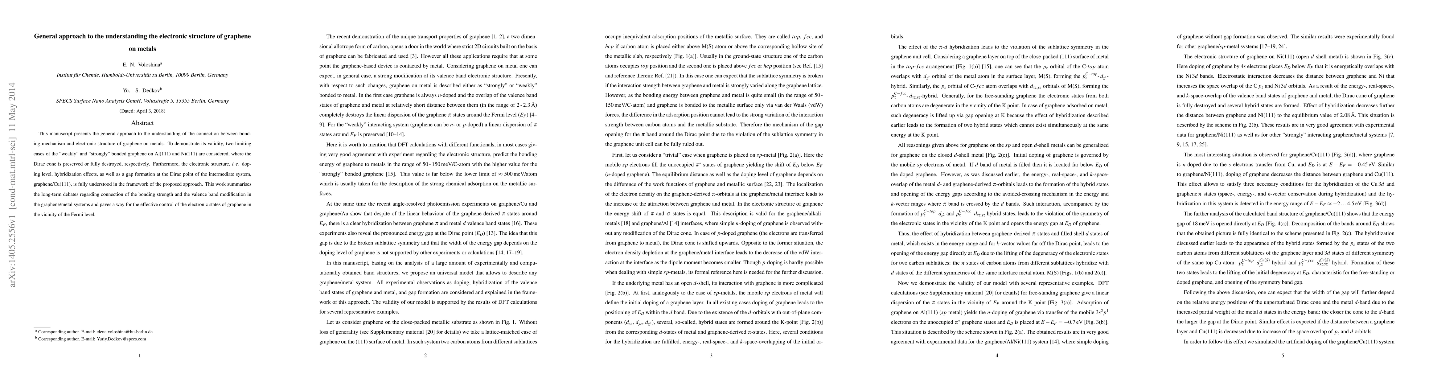 Researchers developed a general approach to understanding how graphene interacts with metals, revealing the connection between bonding strength and electronic structure. The study provides new insights into controlling graphene's electronic states near the Fermi level.