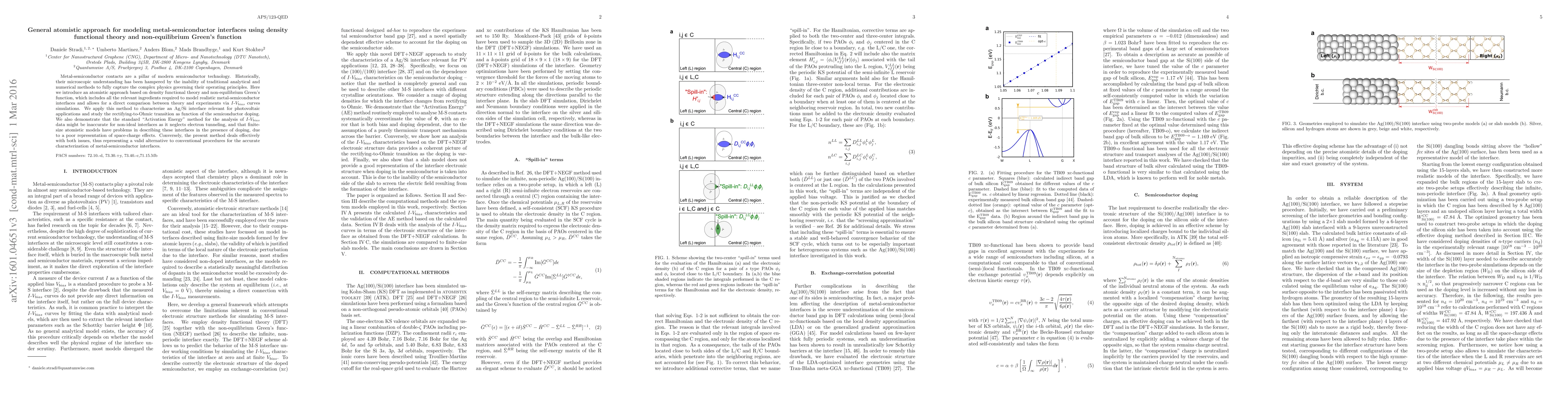 This research introduces a novel atomistic approach using density functional theory and non-equilibrium Green's function to model metal-semiconductor interfaces, addressing limitations of previous methods. It successfully characterizes an Ag/Si interface for photovoltaic applications, offering improved accuracy in simulating I-V bias curves and resolving issues with conventional analysis techniques.