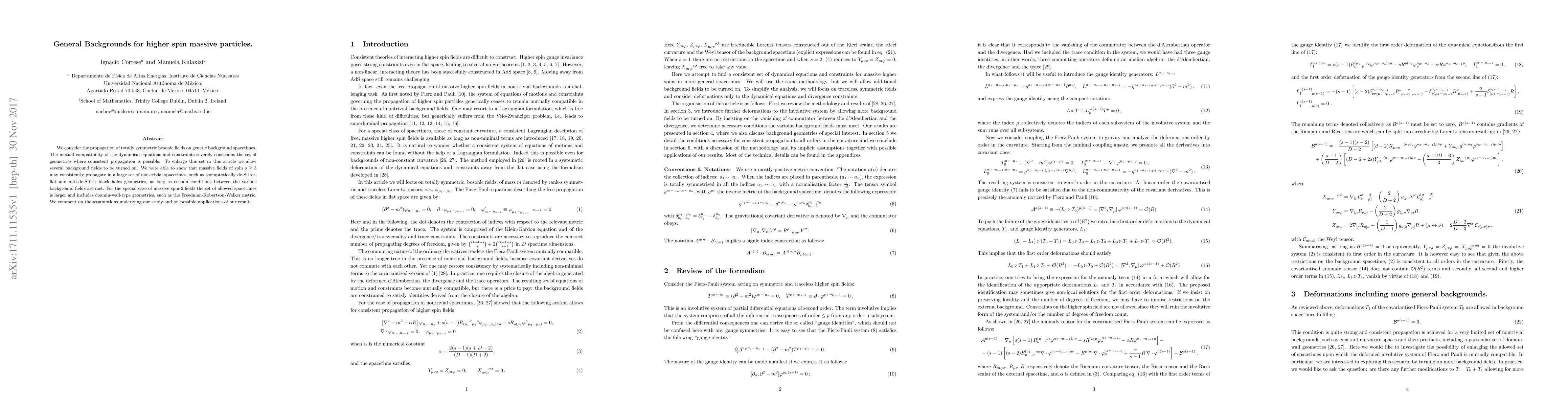 We consider the propagation of totally symmetric bosonic fields on generic background spacetimes. The mutual compatibility of the dynamical equations and constraints severely constrains the set of geometries where consistent propagation is possible. To enlarge this set in this article we allow several background fields to be turned on. We were able to show that massive fields of spin s greater than or equal to three may consistently propagate in a large set of non-trivial spacetimes, such as asymptotically de-Sitter, flat and anti-de-Sitter black holes geometries, as long as certain conditions between the various background fields are met. For the special case of massive spin-2 fields the set of allowed spacetimes is larger and includes domain-wall-type geometries, such as the Freedman-Robertson-Walker metric. We comment on the assumptions underlying our study and on possible applications of our results.