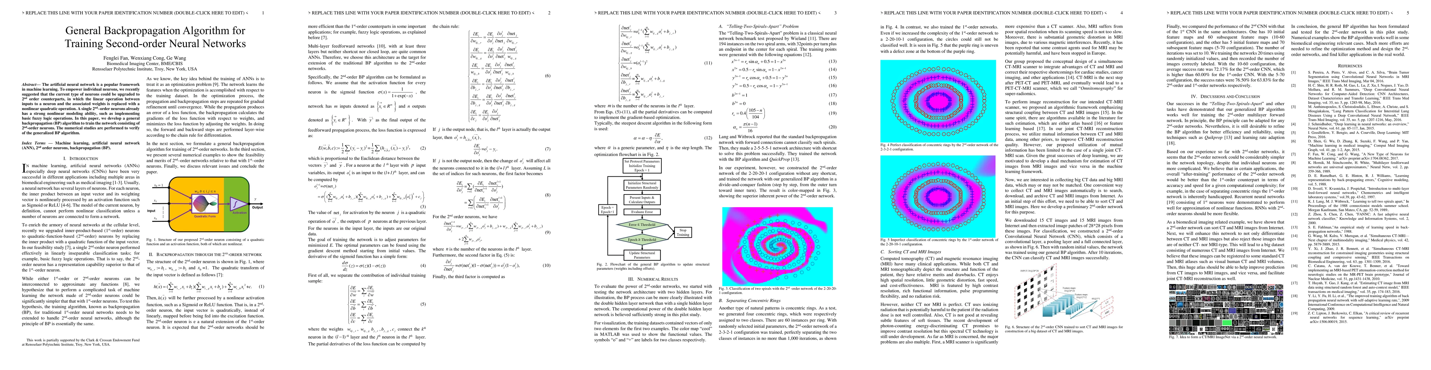 The artificial neural network is a popular framework in machine learning. To empower individual neurons, we recently suggested that the current type of neurons could be upgraded to 2nd order counterparts, in which the linear operation between inputs to a neuron and the associated weights is replaced with a nonlinear quadratic operation. A single 2nd order neurons already has a strong nonlinear modeling ability, such as implementing basic fuzzy logic operations. In this paper, we develop a general backpropagation (BP) algorithm to train the network consisting of 2nd-order neurons. The numerical studies are performed to verify of the generalized BP algorithm.