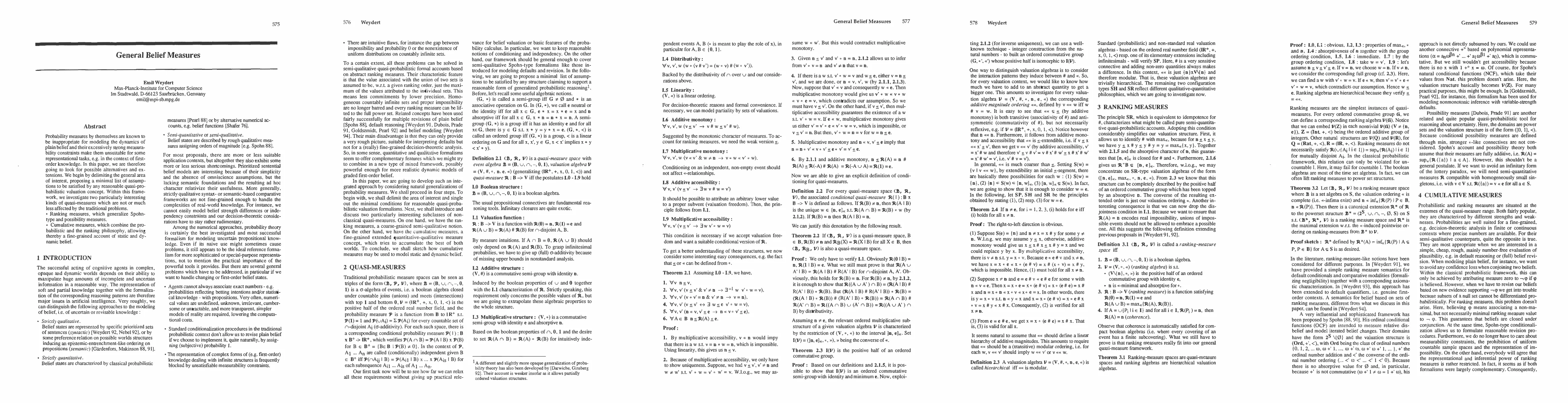 This paper proposes alternatives to traditional probability measures for modeling belief, focusing on ranking and cumulative measures that can handle the constraints of first-order knowledge.