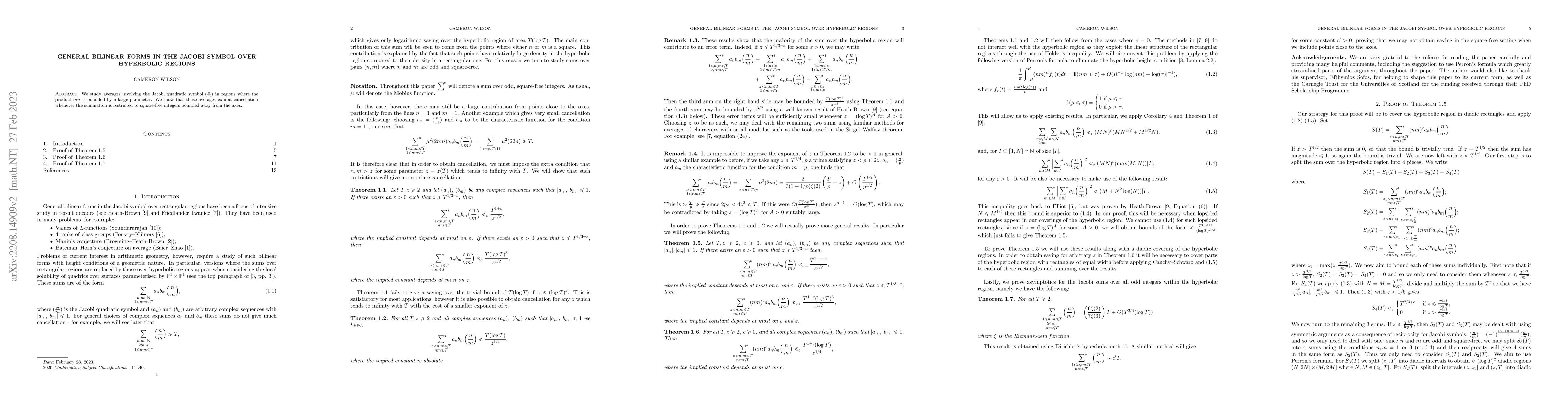 We study averages involving the Jacobi quadratic symbol $(\frac{n}{m})$ in regions where the product $mn$ is bounded by a large parameter. We show that these averages exhibit cancellation whenever the summation is restricted to square-free integers bounded away from the axes.
