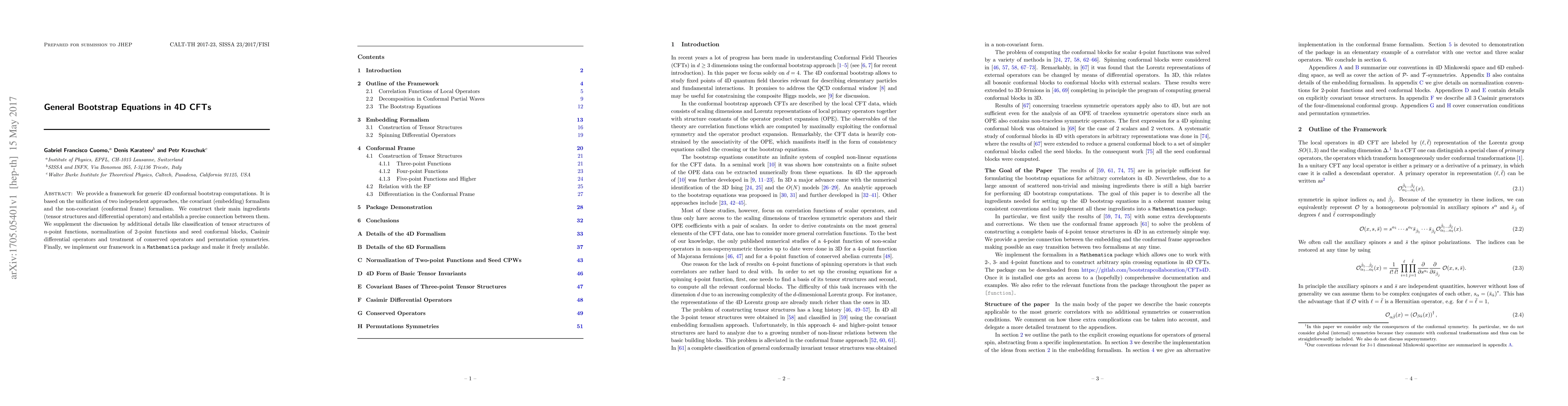This paper presents a unified framework for 4D conformal bootstrap computations, combining covariant and non-covariant formalisms, and provides a Mathematica package for practical implementation. It details tensor structures, differential operators, and conserved operators, alongside permutation symmetries.