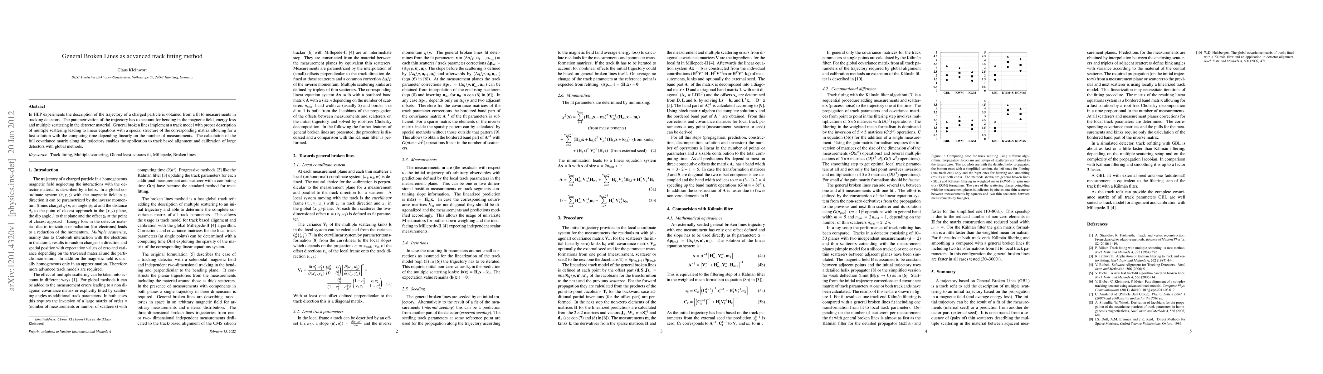 In HEP experiments the description of the trajectory of a charged particle is obtained from a fit to measurements in tracking detectors. The parametrization of the trajectory has to account for bending in the magnetic field, energy loss and multiple scattering in the detector material. General broken lines implement a track model with proper description of multiple scattering leading to linear equations with a special structure of the corresponding matrix allowing for a fast solution with the computing time depending linearly on the number of measurements. The calculation of the full covariance matrix along the trajectory enables the application to track based alignment and calibration of large detectors with global methods.