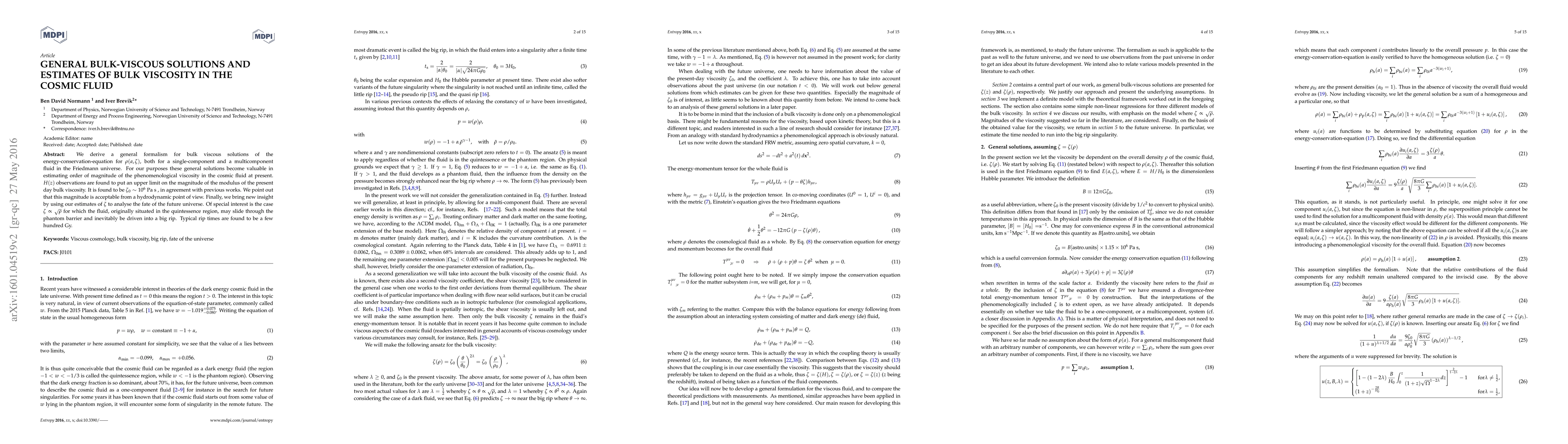 This paper develops a general formalism for bulk viscous solutions in the Friedmann universe, estimating the bulk viscosity in cosmic fluid to be around $10^6~$Pa s. It finds that this magnitude is consistent with hydrodynamics and explores the implications for the future universe, particularly the possibility of a big rip scenario if viscosity scales with the square root of density.