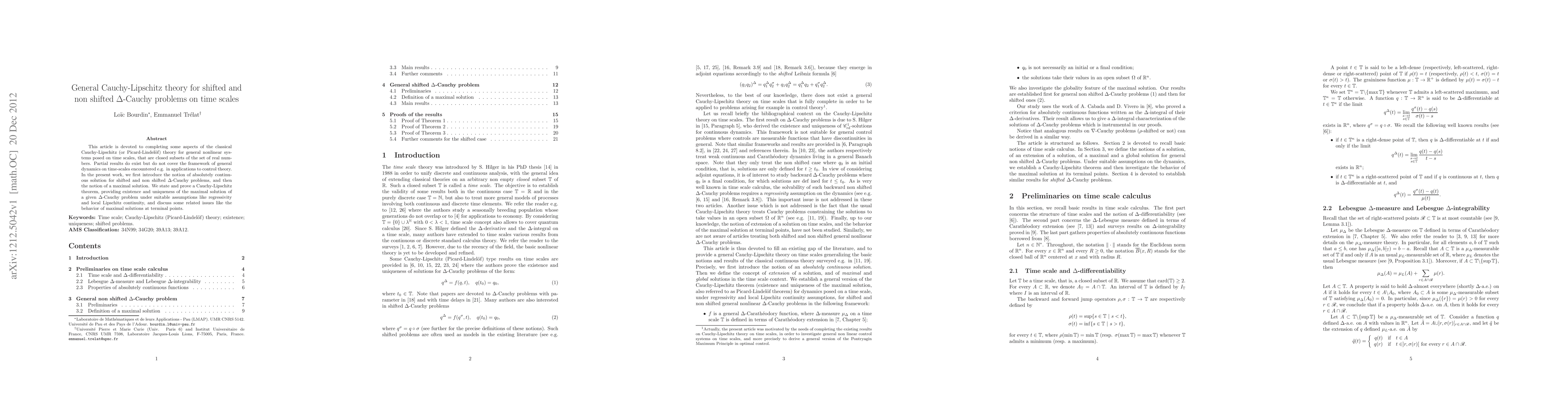 This paper extends classical Cauchy-Lipschitz theory for nonlinear systems on time scales, introducing absolutely continuous solutions for shifted and non-shifted Delta-Cauchy problems and a maximal solution concept. It presents a Cauchy-Lipschitz theorem ensuring existence and uniqueness of maximal solutions under conditions like regressivity and local Lipschitz continuity, discussing solution behavior at terminal points, thereby advancing the theoretical foundation for control theory applications.