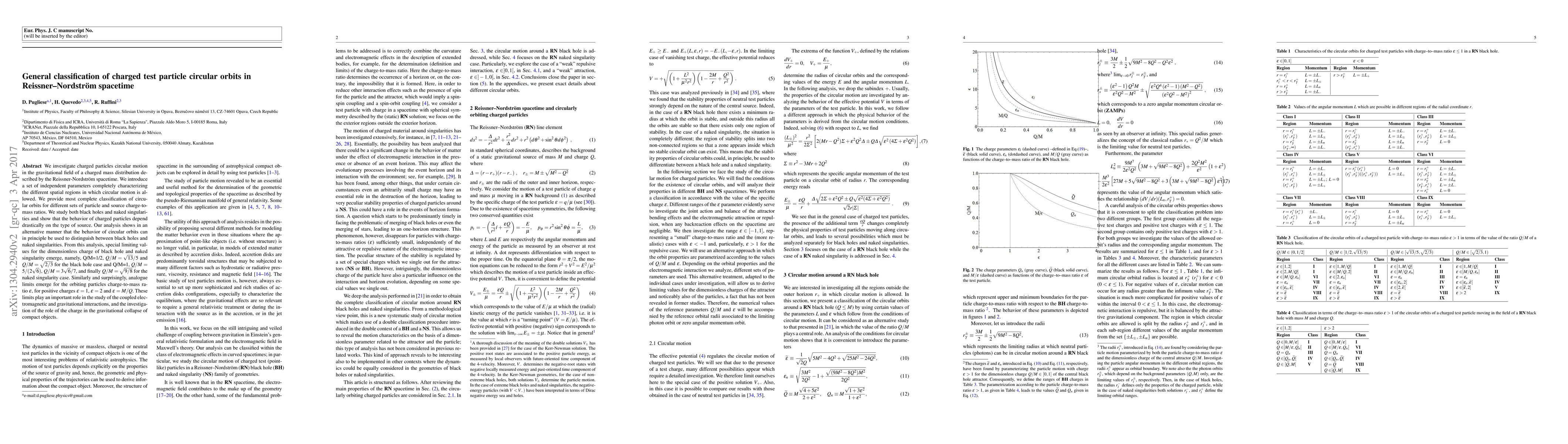 This paper classifies charged test particle circular orbits in Reissner-Nordström spacetime, identifying parameters that characterize different regions allowing circular motion. It distinguishes between black hole and naked singularity behaviors, revealing special charge-to-mass ratios that can differentiate these objects.