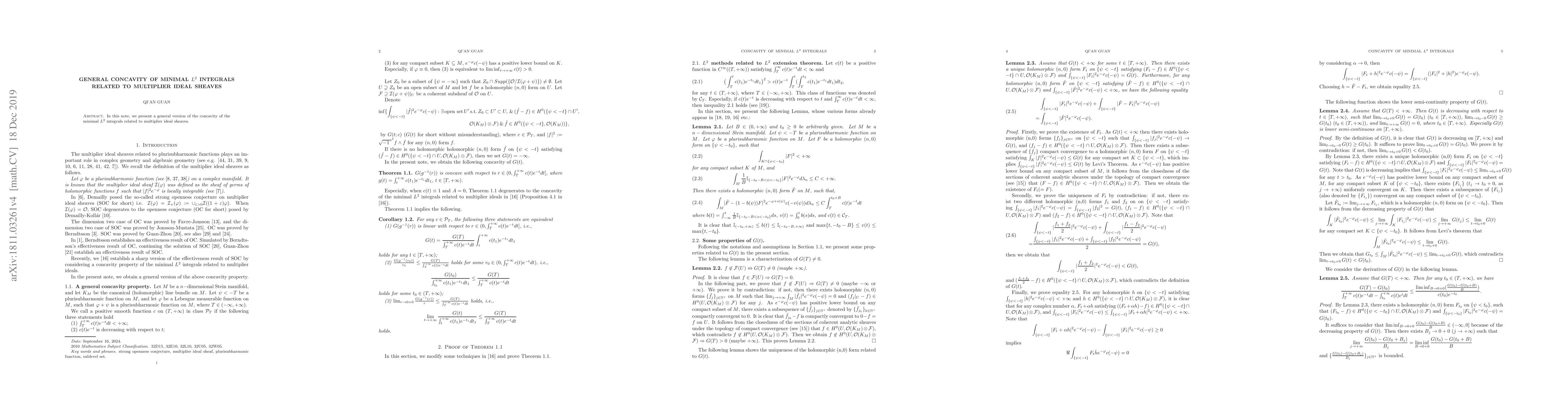 In this note, we present a general version of the concavity of the minimal $L^{2}$ integrals related to multiplier ideal sheaves.