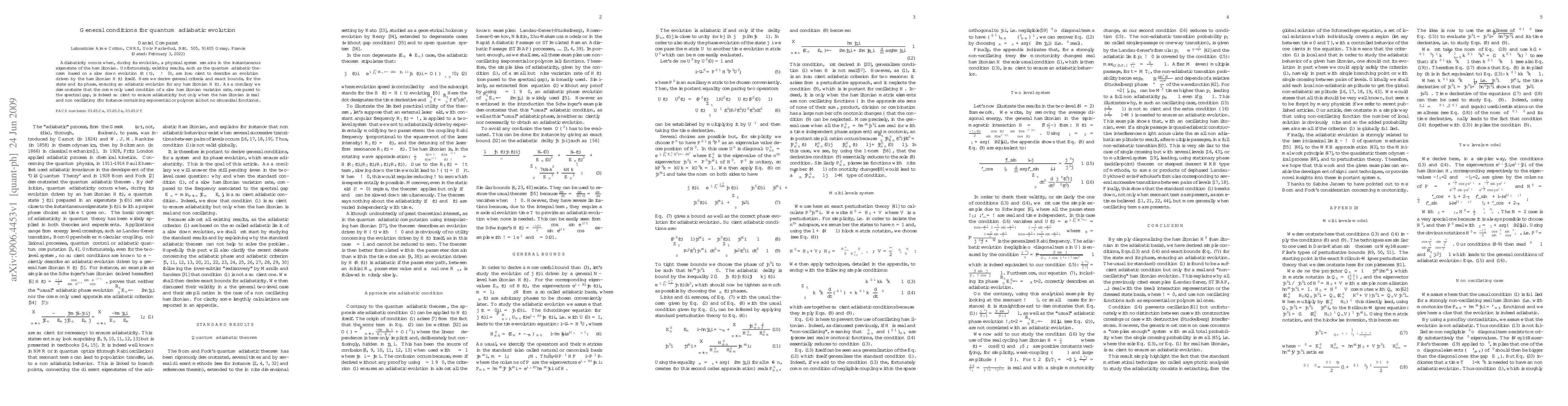 This paper derives general criteria and exact bounds for quantum adiabatic evolution, showing that the commonly used condition of a slow hamiltonian variation rate is sufficient for adiabaticity, but only when the hamiltonian is real and non-oscillating. The findings provide a comprehensive framework for understanding adiabatic processes in quantum systems.