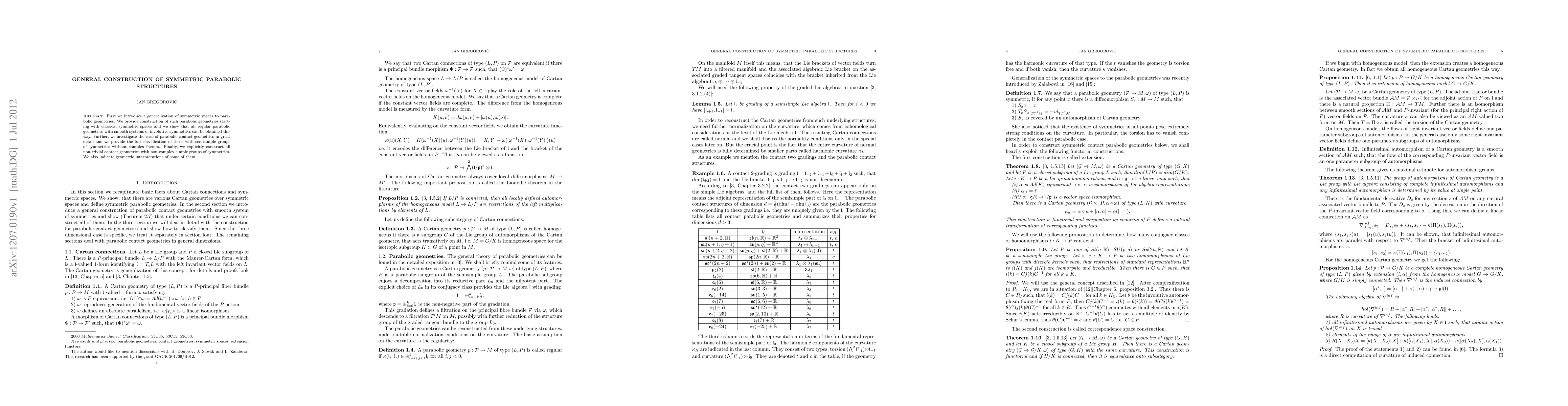This paper generalizes symmetric spaces to parabolic geometries, constructing such structures from classical symmetric spaces and classifying regular parabolic geometries with involutive symmetries. It provides a detailed classification of parabolic contact geometries with semisimple symmetry groups and constructs all non-trivial contact geometries with non-complex simple groups of symmetries, offering geometric interpretations.