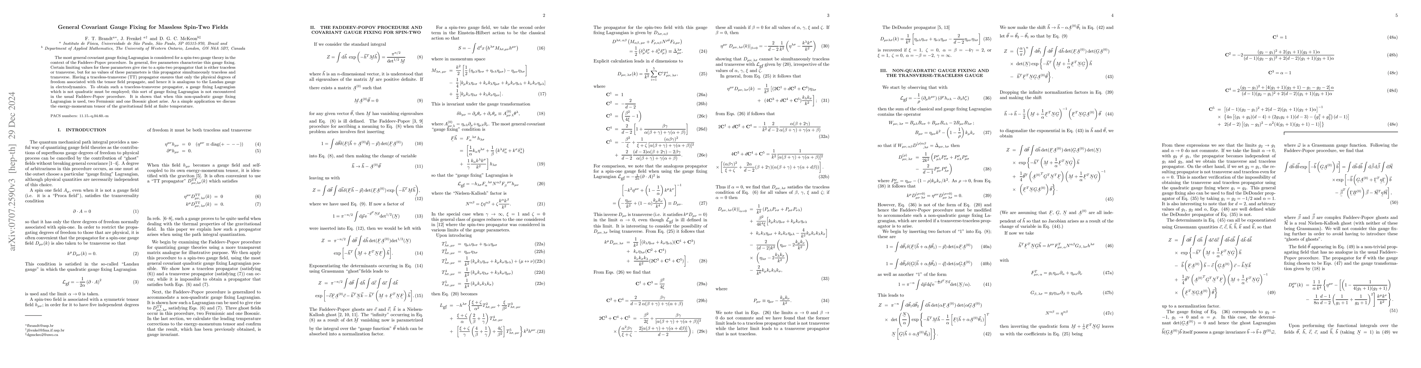 Researchers developed a new method for gauge fixing in spin-two theories, resulting in a traceless-transverse propagator that ensures physical degrees of freedom propagate, analogous to the Landau gauge in electrodynamics.