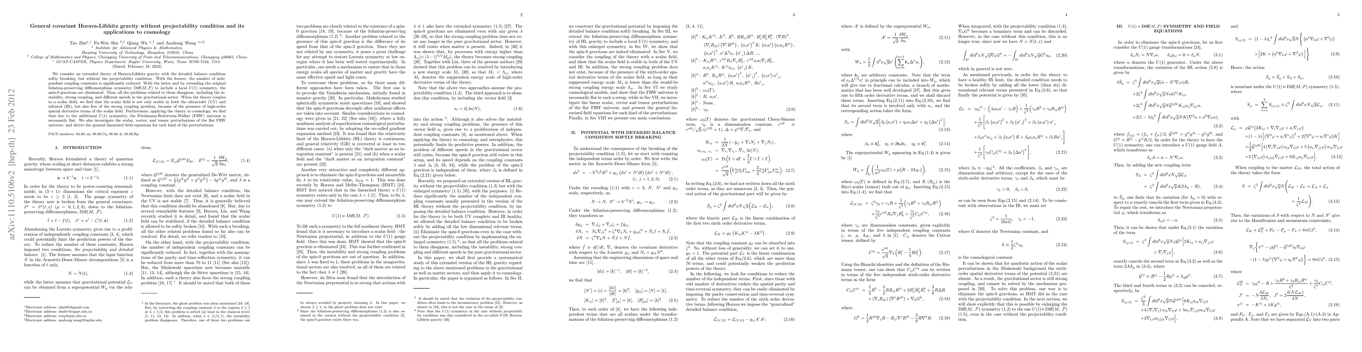 This paper proposes an extended version of Horava-Lifshitz gravity that relaxes the projectability condition while softly breaking the detailed balance condition, eliminating spin-0 gravitons and resolving associated issues. The theory is applied to cosmology, showing a flat Friedmann-Robertson-Walker universe and deriving linearized field equations for scalar, vector, and tensor perturbations.