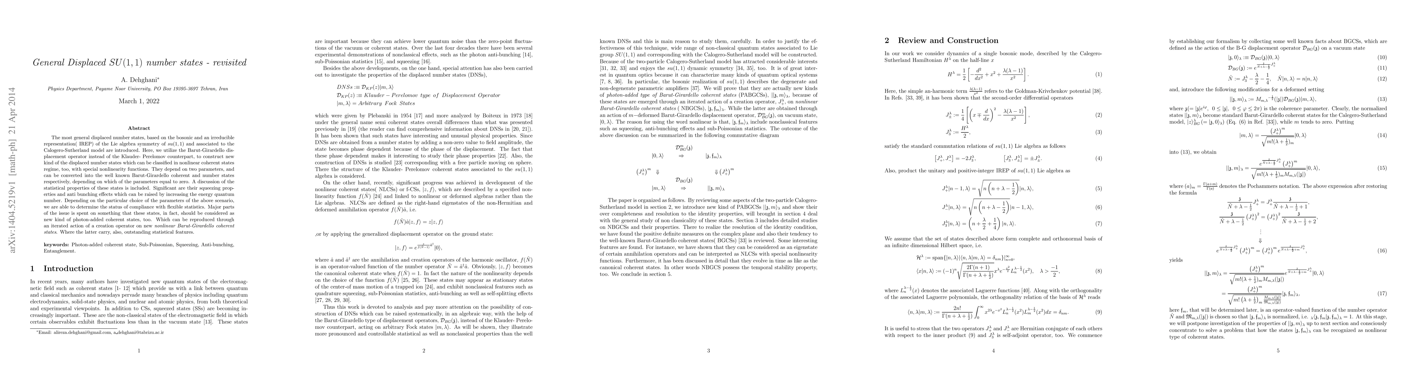 This paper introduces the most general displaced number states based on the su(1, 1) Lie algebra symmetry and constructs new nonlinear coherent states using the Barut-Girardello displacement operator. These states exhibit significant squeezing properties, anti-bunching effects, and flexible statistical features, acting as photon-added coherent states generated via iterated creation operators.
