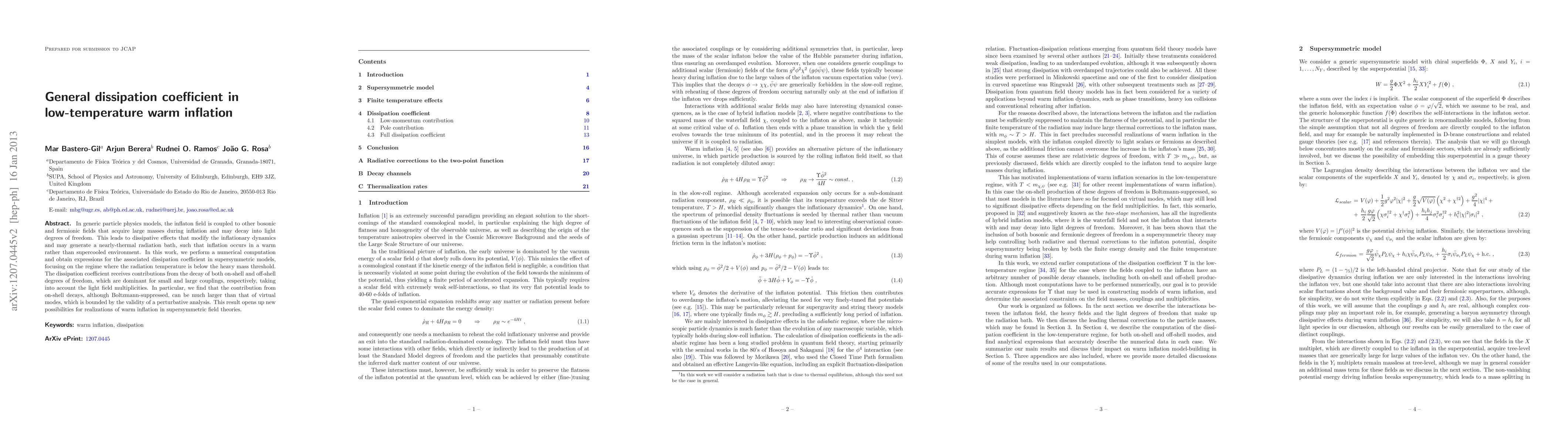 This paper investigates the dissipation coefficient in low-temperature warm inflation, finding that on-shell decay contributions can significantly impact inflationary dynamics, even when Boltzmann-suppressed, thus offering new pathways for warm inflation in supersymmetric models.
