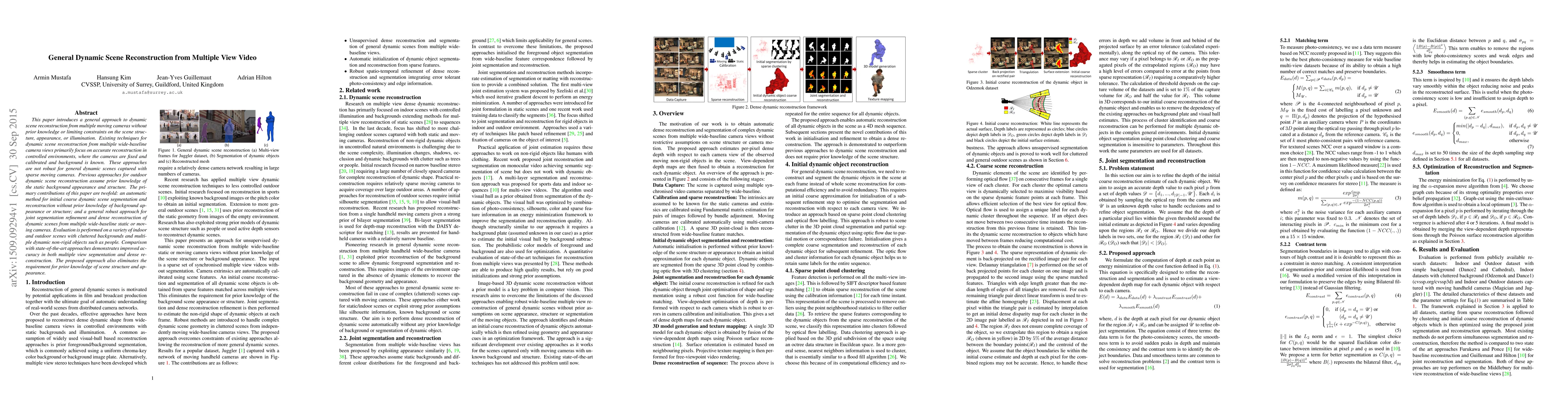 This paper introduces a general approach to dynamic scene reconstruction from multiple moving cameras without prior knowledge or limiting constraints on the scene structure, appearance, or illumination. Existing techniques for dynamic scene reconstruction from multiple wide-baseline camera views primarily focus on accurate reconstruction in controlled environments, where the cameras are fixed and calibrated and background is known. These approaches are not robust for general dynamic scenes captured with sparse moving cameras. Previous approaches for outdoor dynamic scene reconstruction assume prior knowledge of the static background appearance and structure. The primary contributions of this paper are twofold: an automatic method for initial coarse dynamic scene segmentation and reconstruction without prior knowledge of background appearance or structure; and a general robust approach for joint segmentation refinement and dense reconstruction of dynamic scenes from multiple wide-baseline static or moving cameras. Evaluation is performed on a variety of indoor and outdoor scenes with cluttered backgrounds and multiple dynamic non-rigid objects such as people. Comparison with state-of-the-art approaches demonstrates improved accuracy in both multiple view segmentation and dense reconstruction. The proposed approach also eliminates the requirement for prior knowledge of scene structure and appearance.