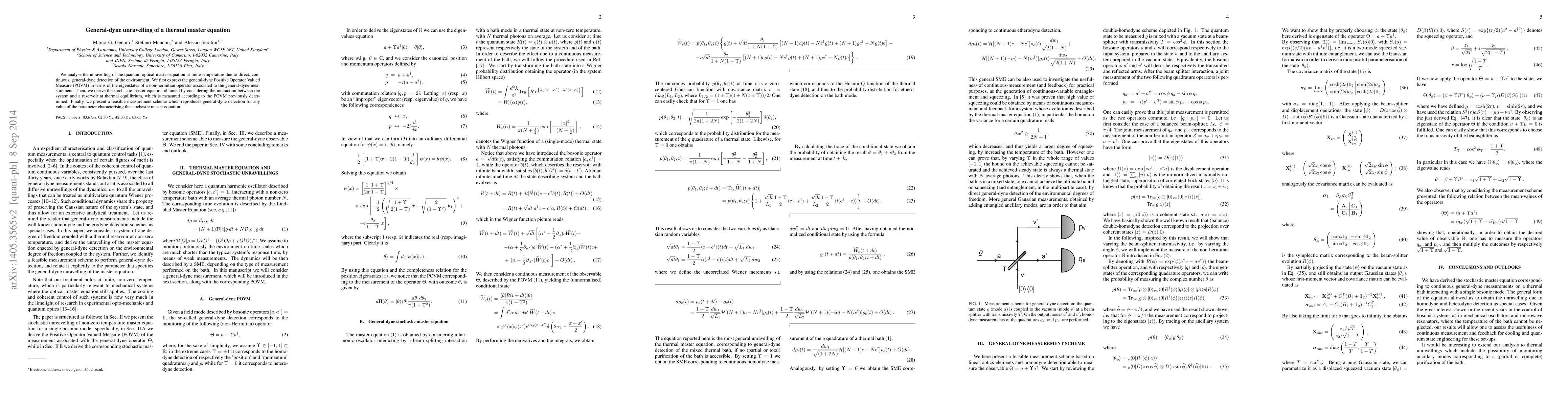 We analyse the unravelling of the quantum optical master equation at finite temperature due to direct, continuous, general-dyne detection of the environment. We first express the general-dyne Positive Operator Valued Measure (POVM) in terms of the eigenstates of a non-hermitian operator associated to the general-dyne measurement. Then, we derive the stochastic master equation obtained by considering the interaction between the system and a reservoir at thermal equilibrium, which is measured according to the POVM previously determined. Finally, we present a feasible measurement scheme which reproduces general-dyne detection for any value of the parameter characterising the stochastic master equation.