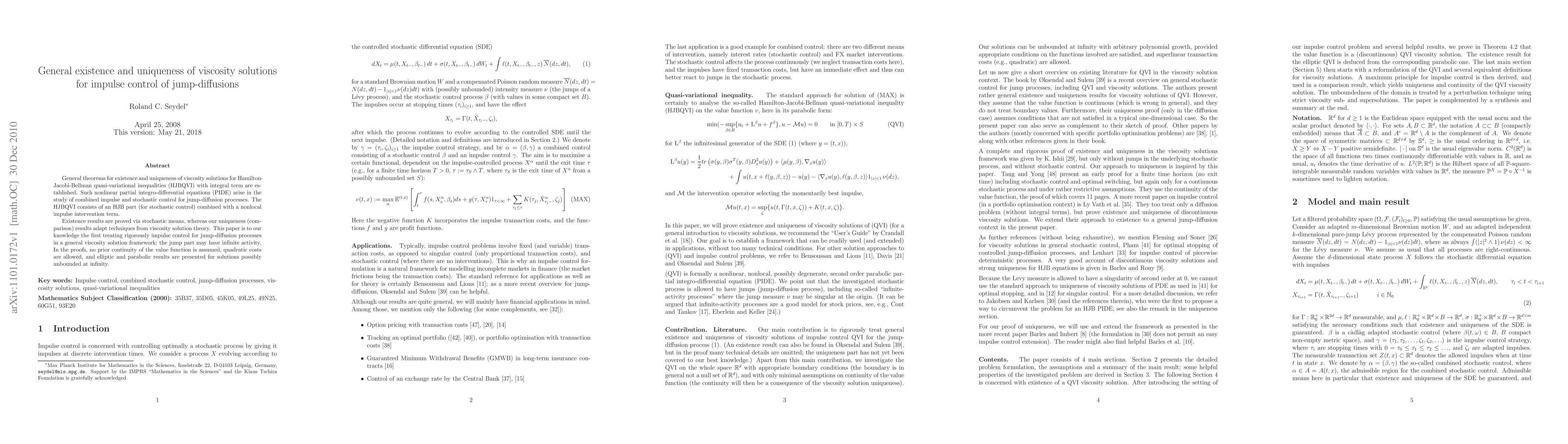 This paper establishes general existence and uniqueness theorems for viscosity solutions of Hamilton-Jacobi-Bellman quasi-variational inequalities with integral terms, addressing impulse control for jump-diffusion processes.