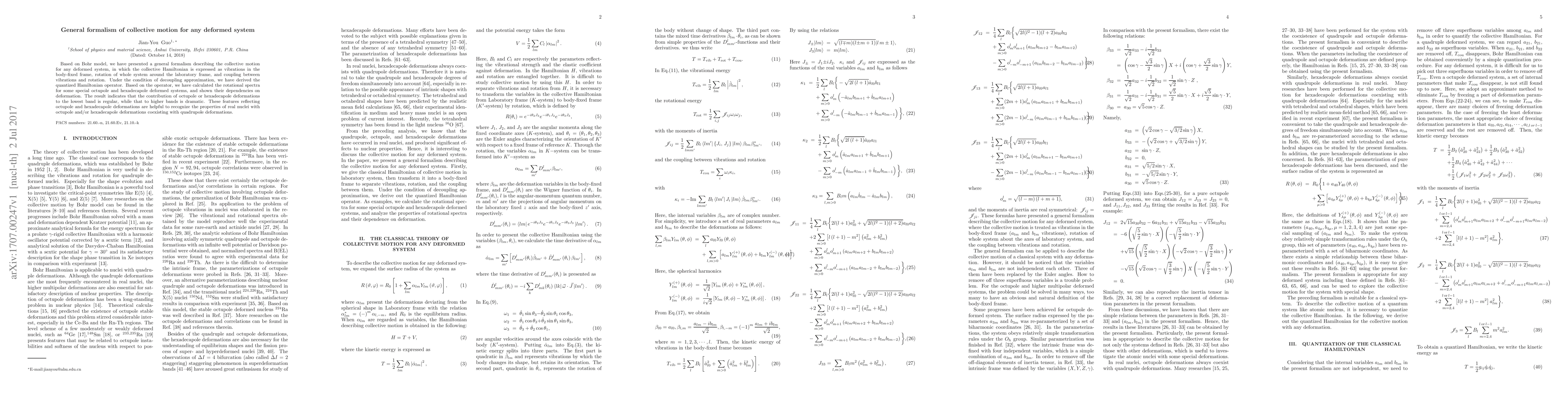 Based on Bohr model, we have presented a general formalism describing the collective motion for any deformed system, in which the collective Hamiltonian is expressed as vibrations in the body-fixed frame, rotation of whole system around the laboratory frame, and coupling between vibrations and rotation. Under the condition of decoupling approximation, we have derived the quantized Hamiltonian operator. Based on the operator, we have calculated the rotational spectra for some special octupole and hexadecapole deformed systems, and shown their dependencies on deformation. The result indicates that the contribution of octupole or hexadecapole deformations to the lowest band is regular, while that to higher bands is dramatic. These features reflecting octupole and hexadecapole deformations are helpful to recognize the properties of real nuclei with octupole and/or hexadecapole deformations coexisting with quadrupole deformations.