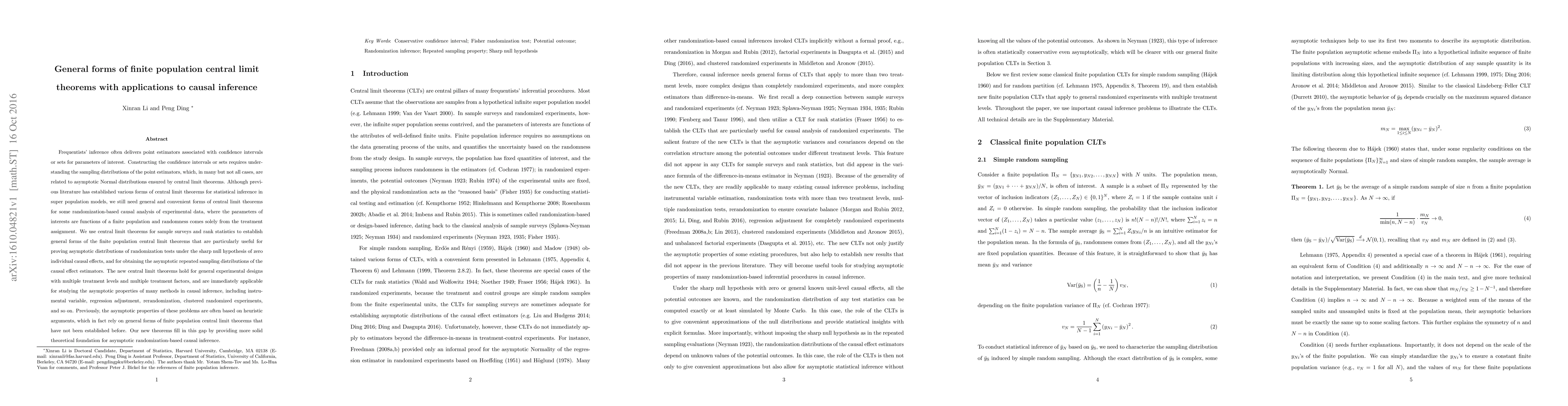 This paper establishes general forms of finite population central limit theorems for randomization-based causal inference, providing a robust theoretical foundation for the asymptotic properties of various causal inference methods, including instrumental variable and regression adjustment, and addressing previously unresolved heuristic arguments.