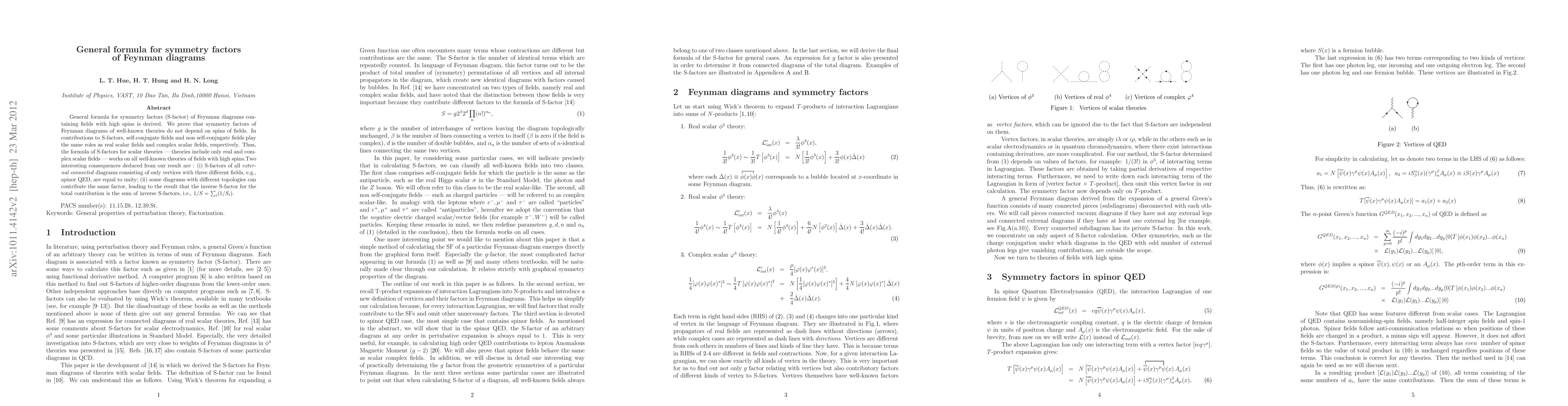 The paper presents a general formula for symmetry factors of Feynman diagrams, demonstrating that it applies universally to theories with high spin fields, simplifying previous complex calculations.