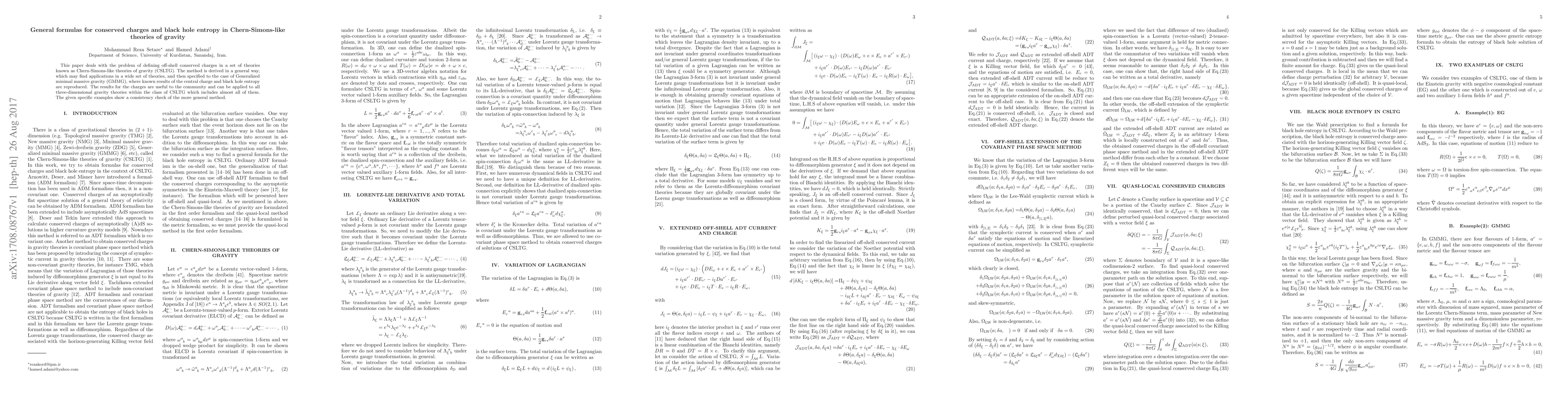 This paper deals with the problem of defining off-shell conserved charges in a set of theories known as Chern-Simons-like theories of gravity (CSLTG). The method is derived in a general way, which may find applications in a wide set of theories, and then specified to the case of Generalized minimal massive gravity (GMMG), where known results of the central charge and black hole entropy are reproduced. The results for the charges are useful to the community and can be applied to all three-dimensional gravity theories within the class of CSLTG which includes almost all of them. The given specific examples show a consistency check of the more general method.