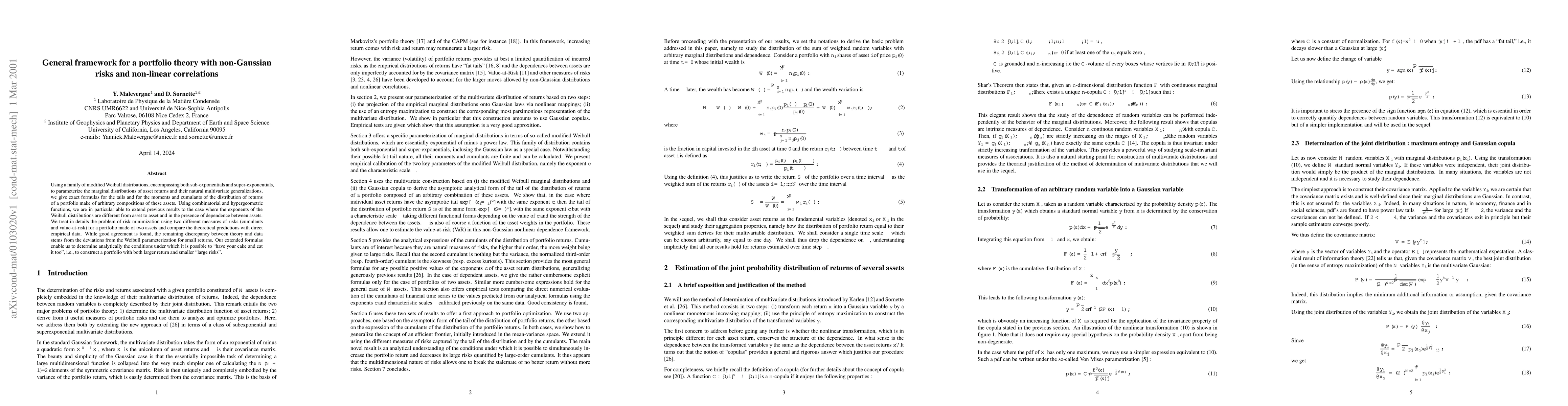 Using a family of modified Weibull distributions, encompassing both sub-exponentials and super-exponentials, to parameterize the marginal distributions of asset returns and their natural multivariate generalizations, we give exact formulas for the tails and for the moments and cumulants of the distribution of returns of a portfolio make of arbitrary compositions of these assets. Using combinatorial and hypergeometric functions, we are in particular able to extend previous results to the case where the exponents of the Weibull distributions are different from asset to asset and in the presence of dependence between assets. We treat in details the problem of risk minimization using two different measures of risks (cumulants and value-at-risk) for a portfolio made of two assets and compare the theoretical predictions with direct empirical data. While good agreement is found, the remaining discrepancy between theory and data stems from the deviations from the Weibull parameterization for small returns. Our extended formulas enable us to determine analytically the conditions under which it is possible to ``have your cake and eat it too'', i.e., to construct a portfolio with both larger return and smaller ``large risks''.