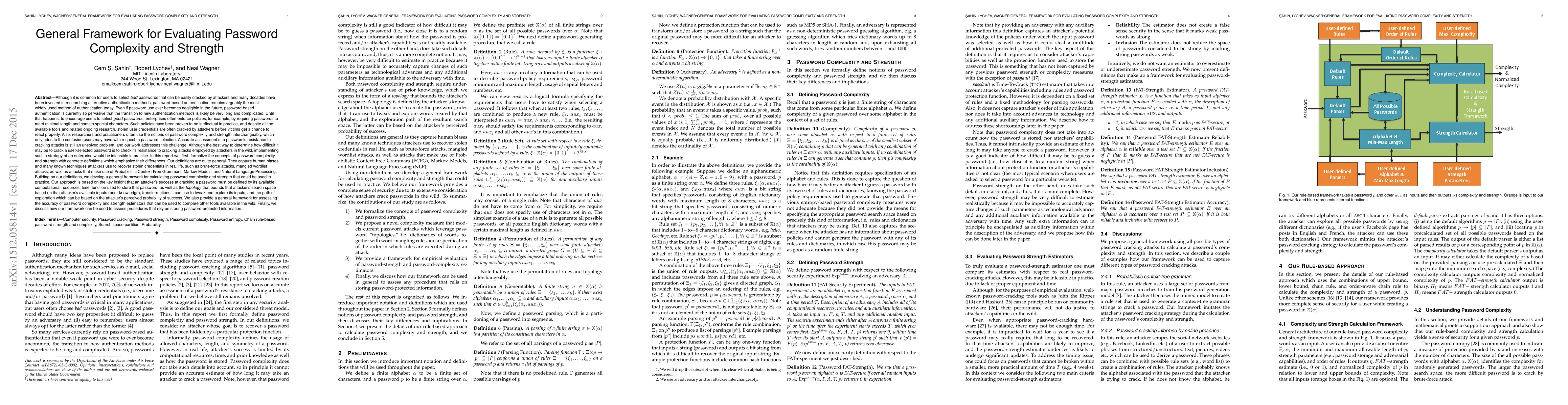 This paper proposes a framework to evaluate password complexity and strength, focusing on distinguishing between the two concepts and addressing their practical assessment. The framework considers factors like computational resources, attack techniques, and search space topology to determine password resistance, aiming to improve password security policies.