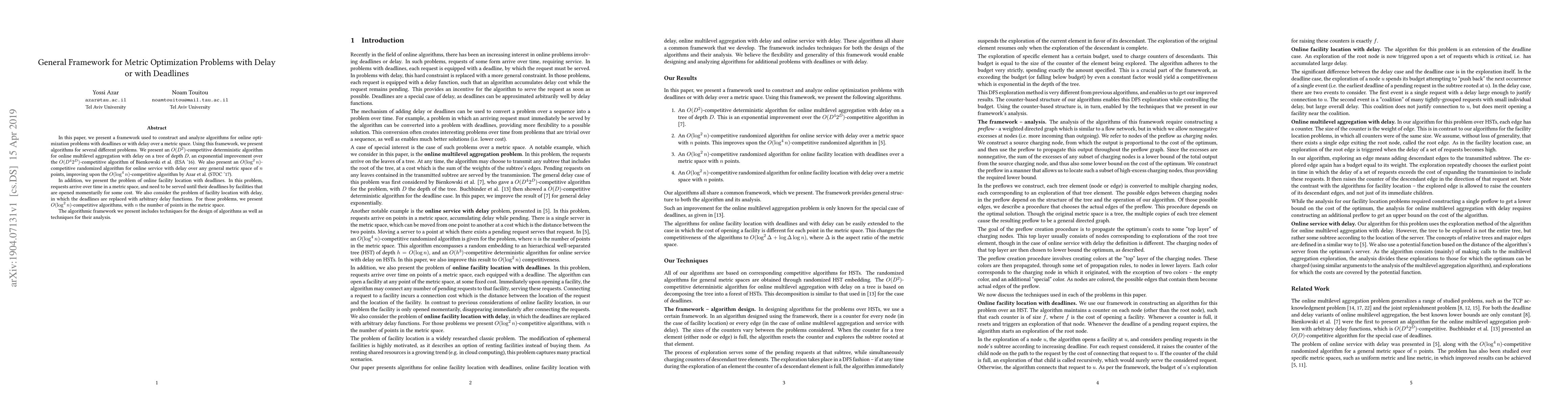 In this paper, we present a framework used to construct and analyze algorithms for online optimization problems with deadlines or with delay over a metric space. Using this framework, we present algorithms for several different problems. We present an $O(D^{2})$-competitive deterministic algorithm for online multilevel aggregation with delay on a tree of depth $D$, an exponential improvement over the $O(D^{4}2^{D})$-competitive algorithm of Bienkowski et al. (ESA '16), where the only previously-known improvement was for the special case of deadlines by Buchbinder et al. (SODA '17). We also present an $O(\log^{2}n)$-competitive randomized algorithm for online service with delay over any general metric space of $n$ points, improving upon the $O(\log^{4}n)$-competitive algorithm by Azar et al. (STOC '17). In addition, we present the problem of online facility location with deadlines. In this problem, requests arrive over time in a metric space, and need to be served until their deadlines by facilities that are opened momentarily for some cost. We also consider the problem of facility location with delay, in which the deadlines are replaced with arbitrary delay functions. For those problems, we present $O(\log^{2}n)$-competitive algorithms, with $n$ the number of points in the metric space. The algorithmic framework we present includes techniques for the design of algorithms as well as techniques for their analysis.
