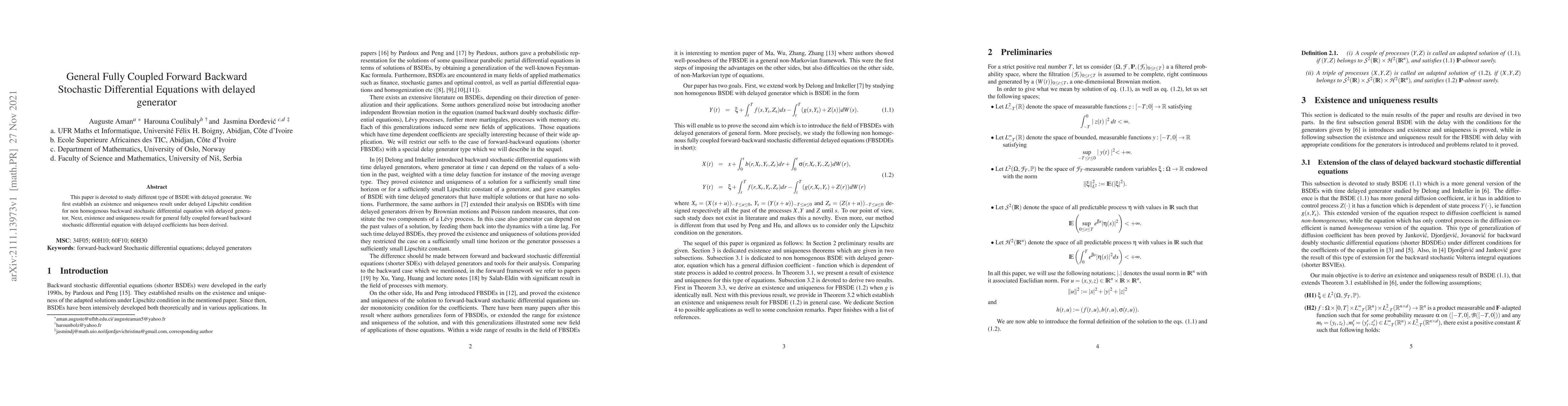 This paper explores the existence and uniqueness of solutions for backward stochastic differential equations (BSDE) with delayed generators, establishing results under delayed Lipschitz conditions. It further derives similar results for general fully coupled forward backward stochastic differential equations with delayed coefficients.