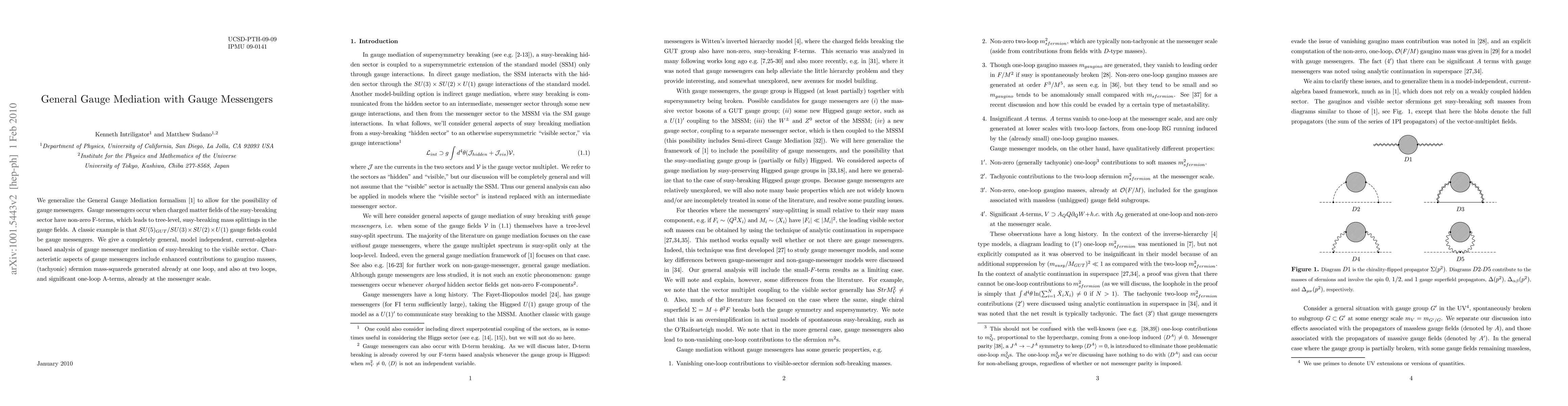 This paper generalizes the General Gauge Mediation framework to incorporate gauge messengers, where charged matter fields in the SUSY-breaking sector induce non-zero F-terms, leading to tree-level SUSY-breaking mass splittings in gauge fields. It provides a comprehensive, current-algebra based analysis of how gauge messengers mediate SUSY-breaking to the visible sector, highlighting enhanced gaugino masses and significant one-loop A-terms.