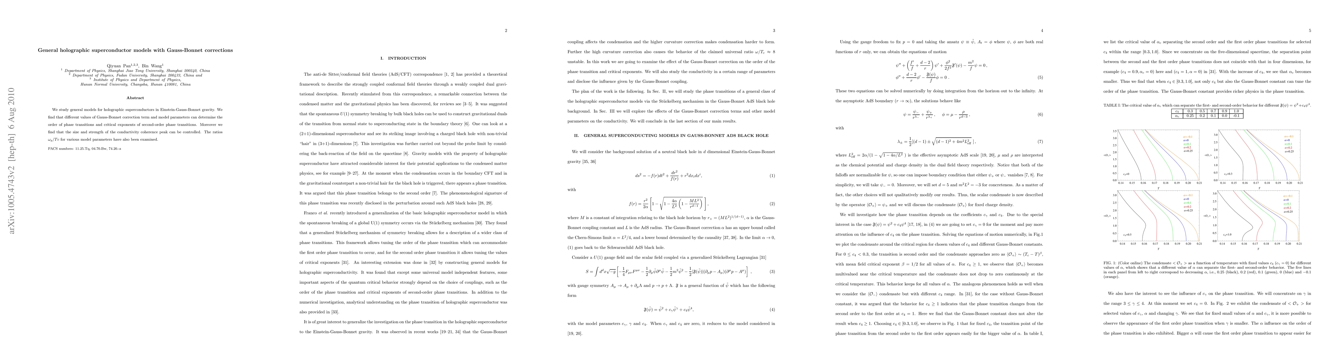We study general models for holographic superconductors in Einstein-Gauss-Bonnet gravity. We find that different values of Gauss-Bonnet correction term and model parameters can determine the order of phase transitions and critical exponents of second-order phase transitions. Moreover we find that the size and strength of the conductivity coherence peak can be controlled. The ratios $\omega_g/Tc$ for various model parameters have also been examined.