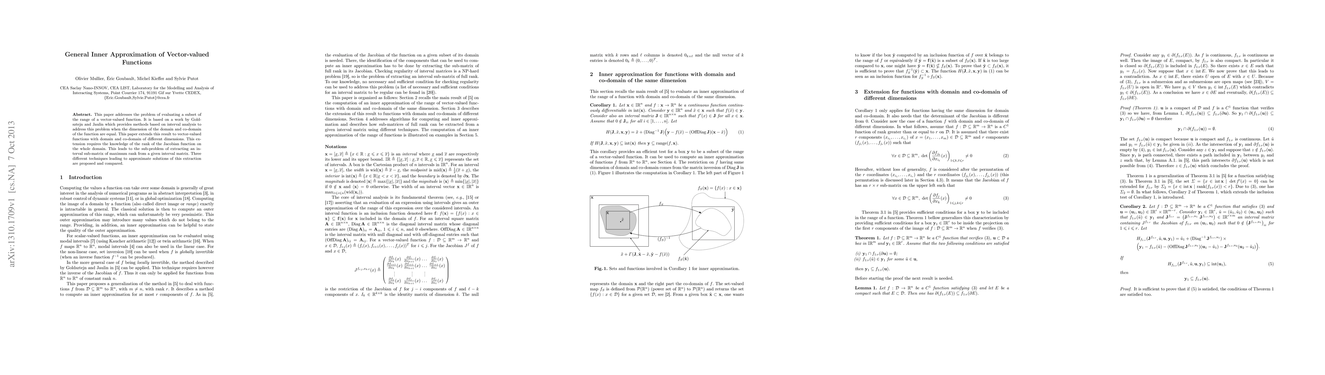 This paper addresses the problem of evaluating a subset of the range of a vector-valued function. It is based on a work by Gold- sztejn and Jaulin which provides methods based on interval analysis to address this problem when the dimension of the domain and co-domain of the function are equal. This paper extends this result to vector-valued functions with domain and co-domain of different dimensions. This ex- tension requires the knowledge of the rank of the Jacobian function on the whole domain. This leads to the sub-problem of extracting an in- terval sub-matrix of maximum rank from a given interval matrix. Three different techniques leading to approximate solutions of this extraction are proposed and compared.