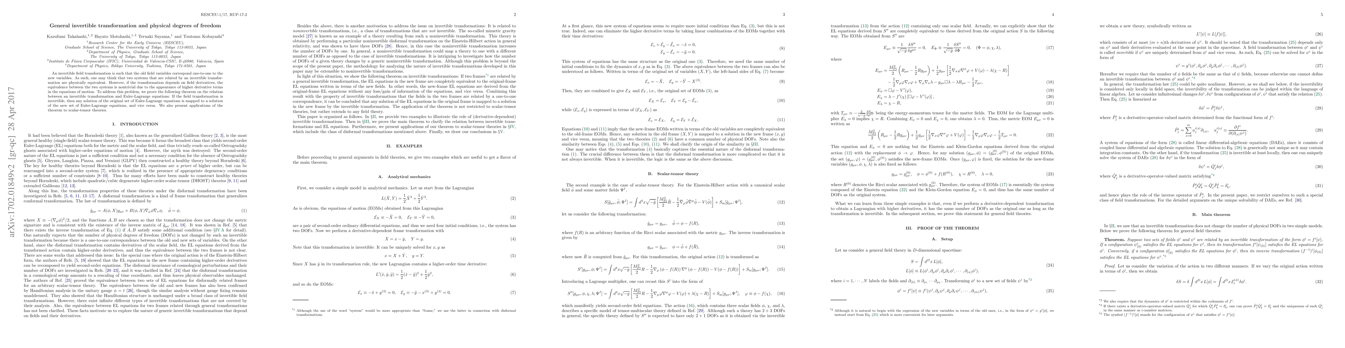 This paper explores the physical equivalence of systems related by invertible field transformations, demonstrating that while such transformations map solutions of Euler-Lagrange equations, higher derivative terms can complicate equivalence. The authors prove a theorem ensuring solutions remain valid under the transformation and apply it to scalar-tensor theories.