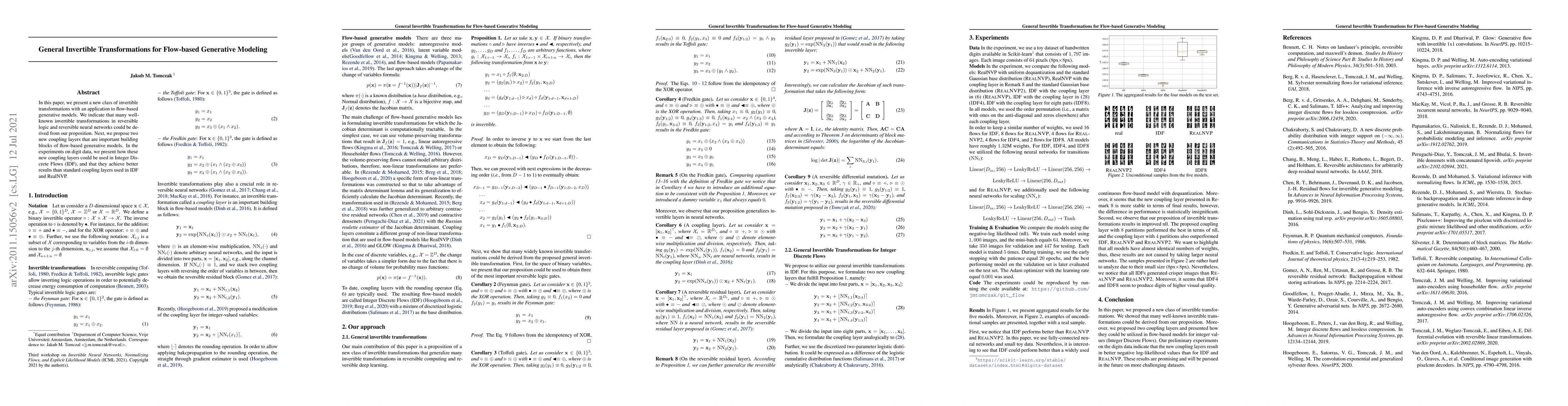 This paper introduces a new class of invertible transformations applicable to flow-based generative models, proposing two novel coupling layers that outperform existing methods. Experiments on digit data show improved results using these new coupling layers in Integer Discrete Flows.