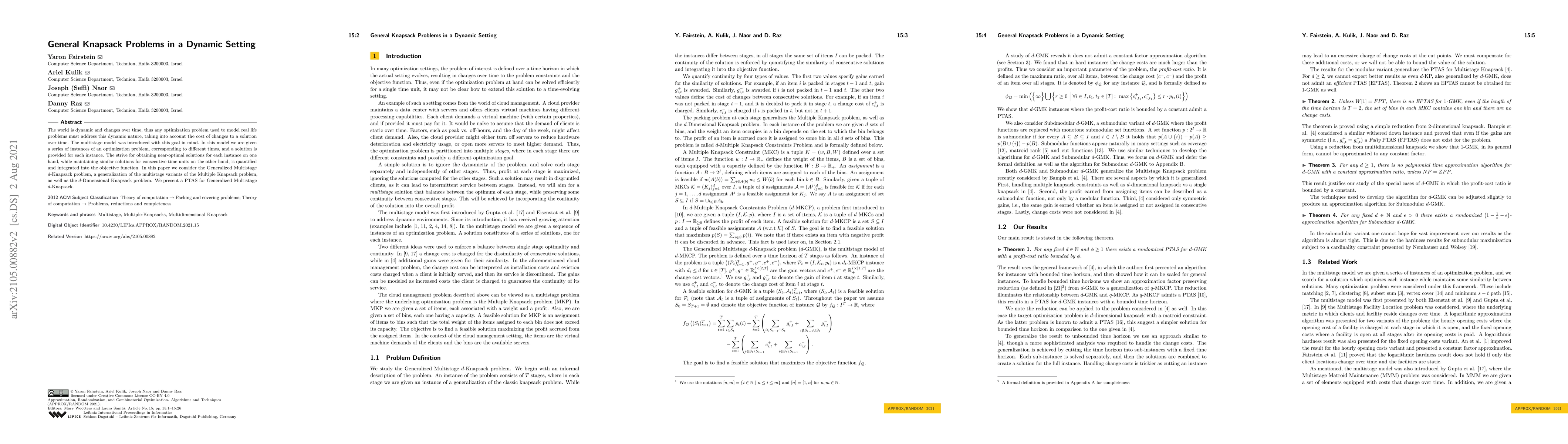 The world is dynamic and changes over time, thus any optimization problem used to model real life problems must address this dynamic nature, taking into account the cost of changes to a solution over time. The multistage model was introduced with this goal in mind. In this model we are given a series of instances of an optimization problem, corresponding to different times, and a solution is provided for each instance. The strive for obtaining near-optimal solutions for each instance on one hand, while maintaining similar solutions for consecutive time units on the other hand, is quantified and integrated into the objective function. In this paper we consider the Generalized Multistage $d$-Knapsack problem, a generalization of the multistage variants of the Multiple Knapsack problem, as well as the $d$-Dimensional Knapsack problem. We present a PTAS for Generalized Multistage $d$-Knapsack.