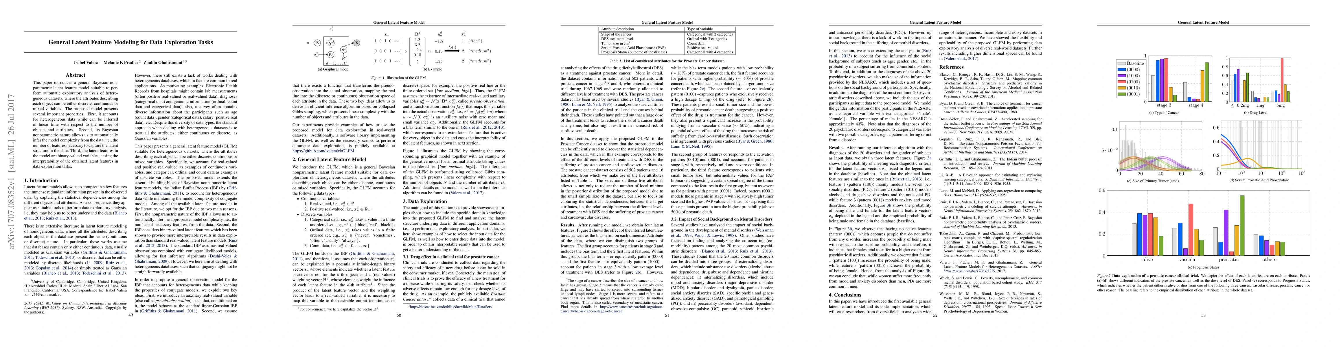 This paper proposes a Bayesian nonparametric latent feature model for automatic exploratory analysis of heterogeneous datasets, enabling efficient inference and automatic determination of model complexity, with binary-valued latent features for enhanced interpretability.