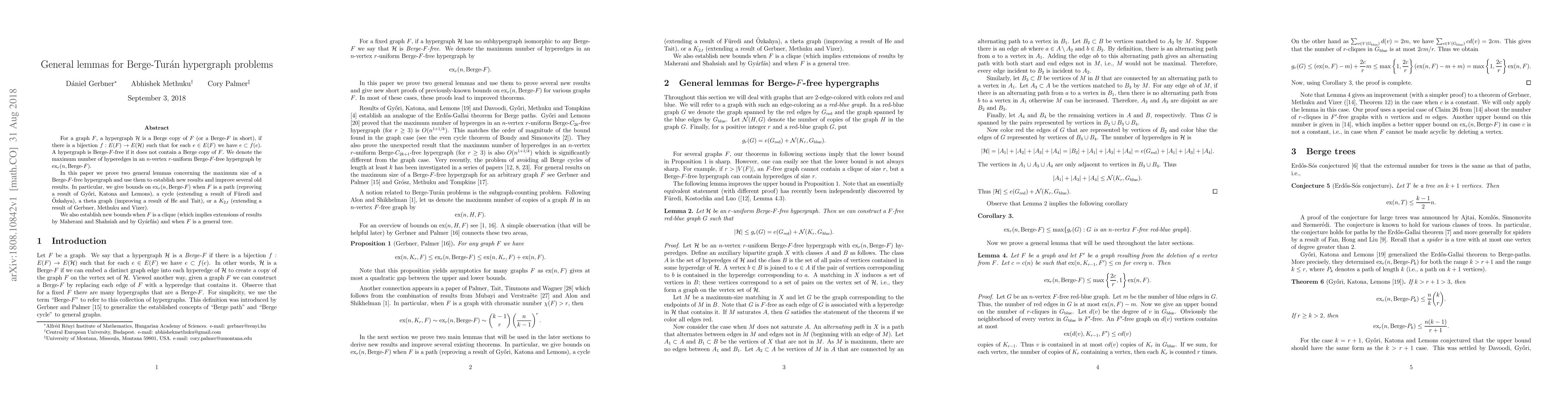 This paper proves two general lemmas for Berge-Turán hypergraph problems, establishing new bounds on the maximum size of a Berge-F-free hypergraph for various graph structures, including paths, cycles, theta graphs, and cliques.