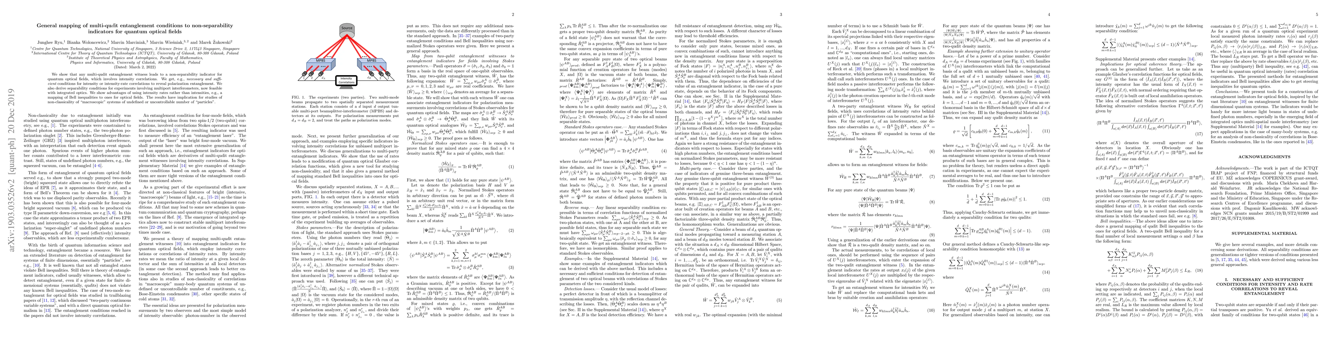 We show that any multi-qudit entanglement witness leads to a non-separability indicator for quantum optical fields, which involves intensity correlations. We get, e.g., necessary and sufficient conditions for intensity or intensity-rate correlations to reveal polarization entanglement. We also derive separability conditions for experiments involving multiport interferometers, now feasible with integrated optics. We show advantages of using intensity rates rather than intensities, e.g., a mapping of Bell inequalities to ones for optical fields. The results have implication for studies of non-classicality of "macroscopic" systems of undefined or uncontrollable number of "particles".