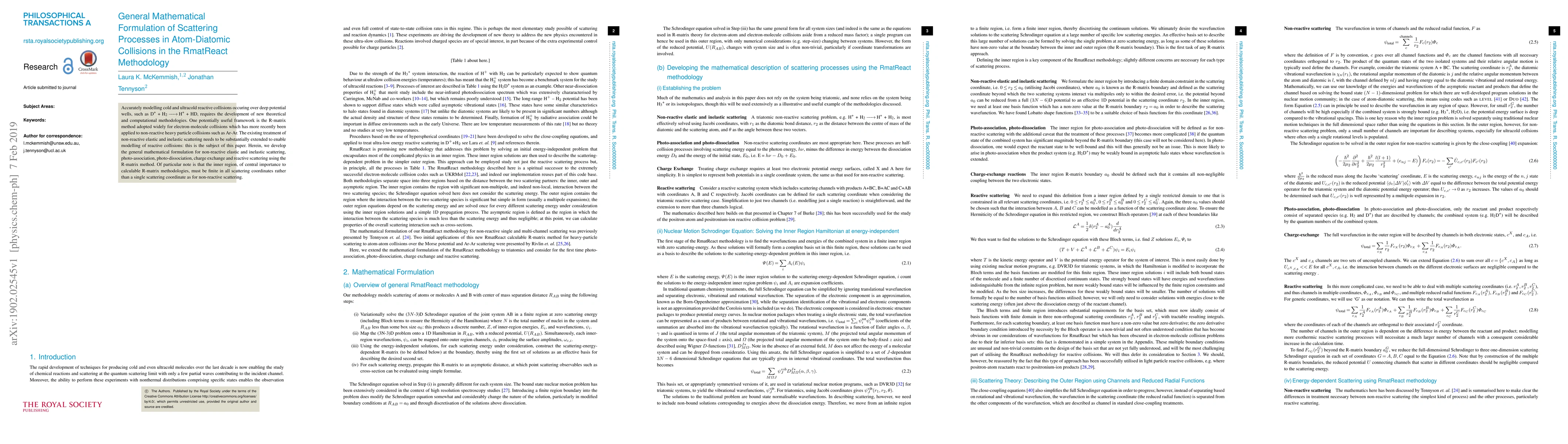 Researchers developed a general mathematical formulation for non-reactive elastic and inelastic scattering, photo-association, and reactive scattering using the R-matrix method to model atom-diatomic collisions.