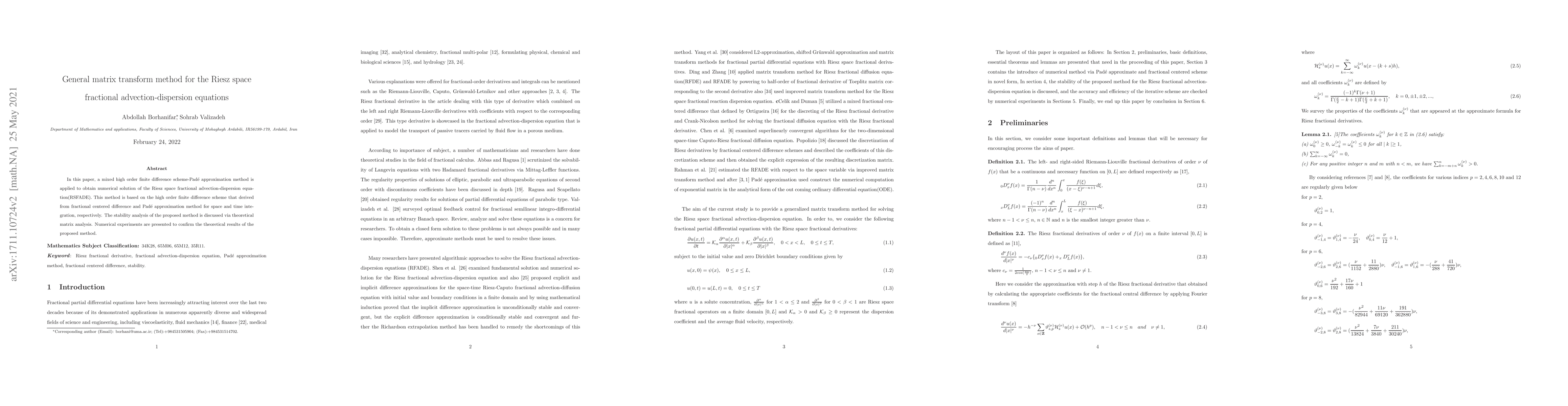 This paper proposes a mixed high-order finite difference scheme combined with Padé approximation to numerically solve the Riesz fractional advection-dispersion equation. Theoretical matrix analysis confirms the stability of the method, which is validated through numerical experiments.