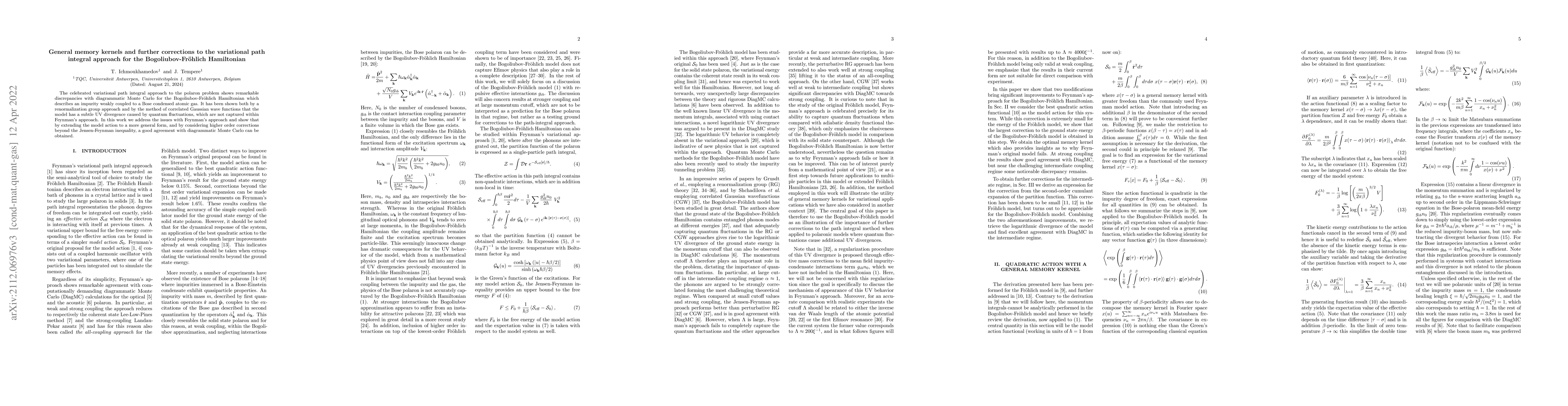 This paper addresses discrepancies between the variational path integral approach and Monte Carlo simulations for the Bogoliubov-Fröhlich Hamiltonian, revealing a UV divergence issue. It proposes extending the model action and incorporating higher-order corrections to achieve better agreement with Monte Carlo results.
